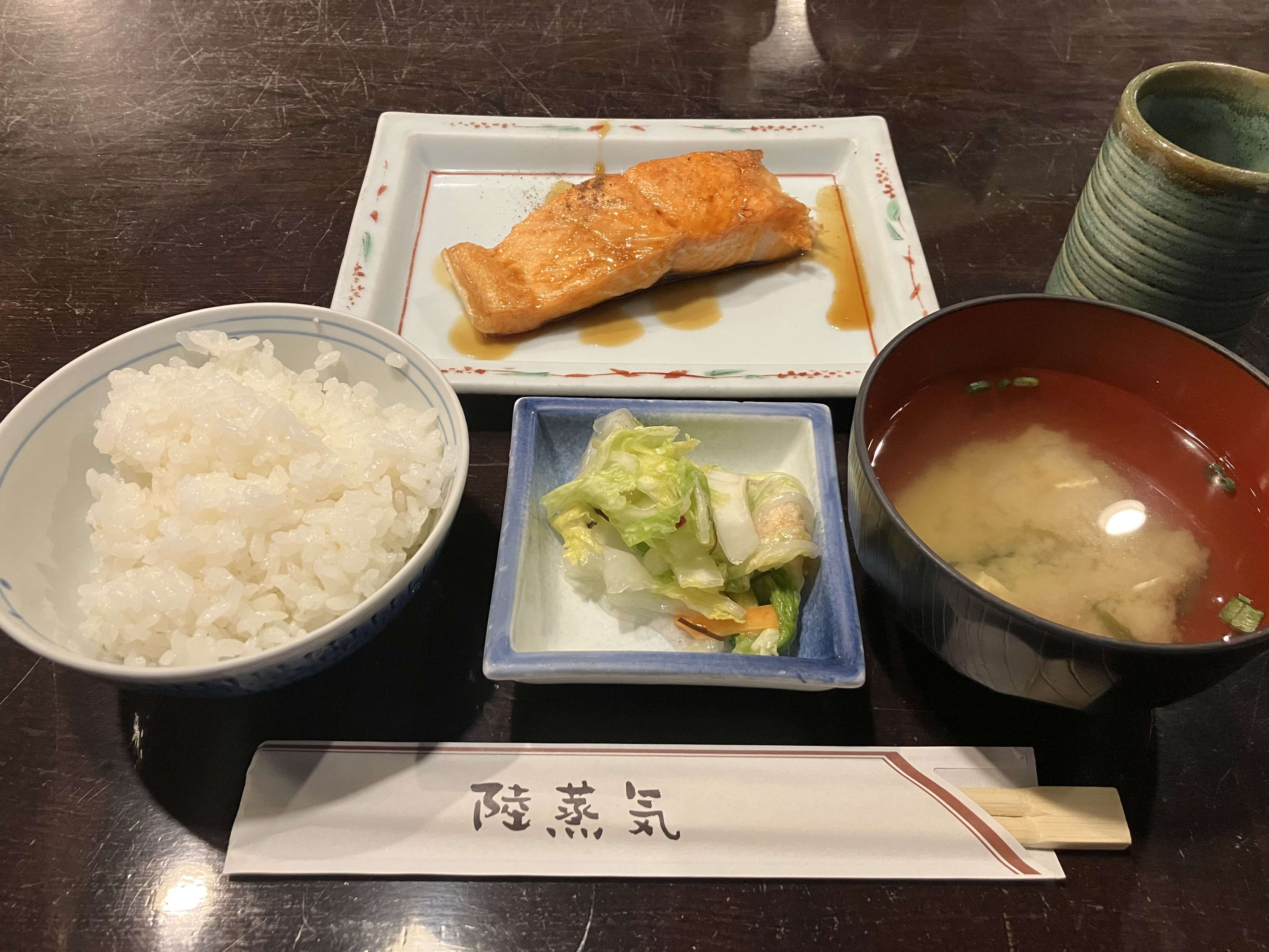 鮭や、鯖、金目鯛などたくさん魚の種類がありましたが鮭にしました。ご飯、お味噌汁、お新香がおかわり自由なのもよかったです。味は、旅館で食べる朝ごはんレベルでした。とっても美味しくて、雰囲気も良くて良いお店でした。