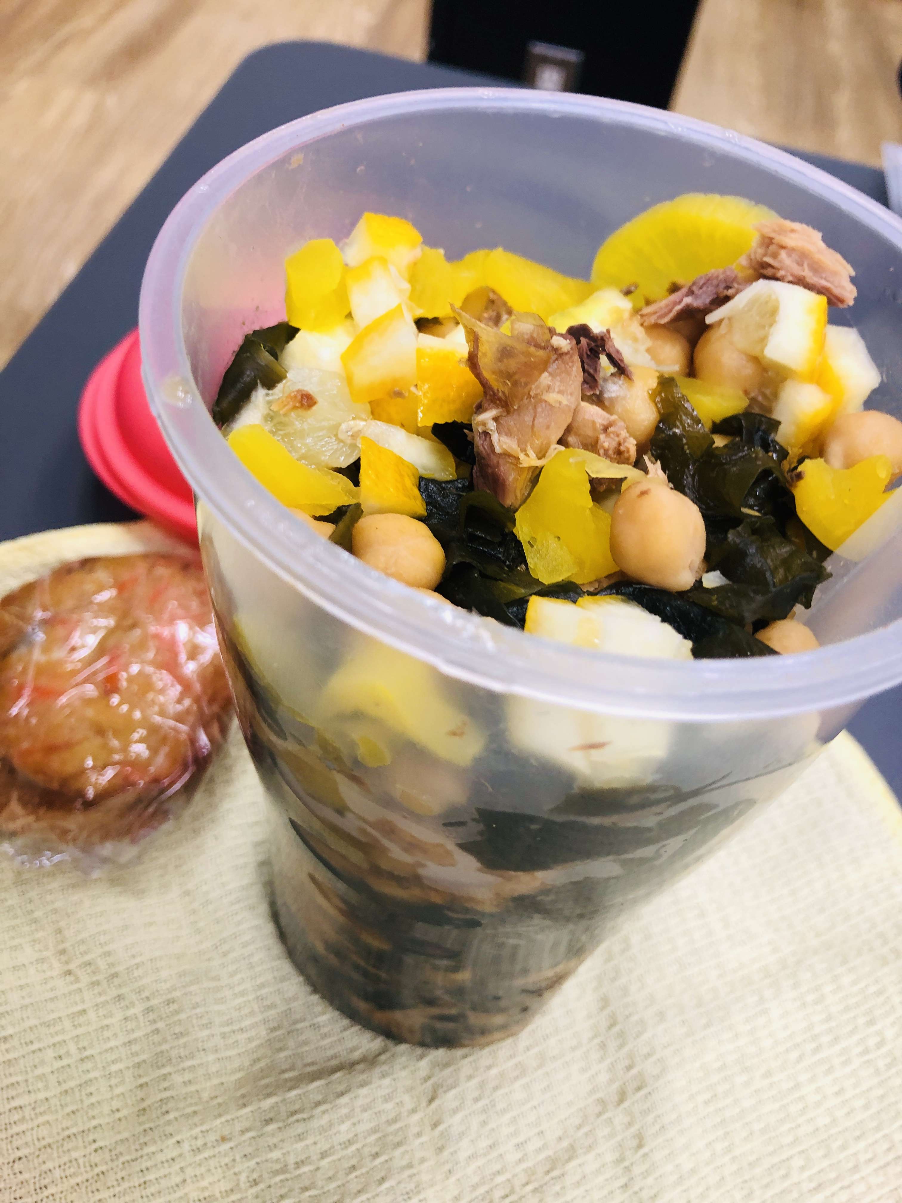 お弁当はそこに鯖やレモン、ほうれん草なども加え、ヘルシーな和風サラダに🥗