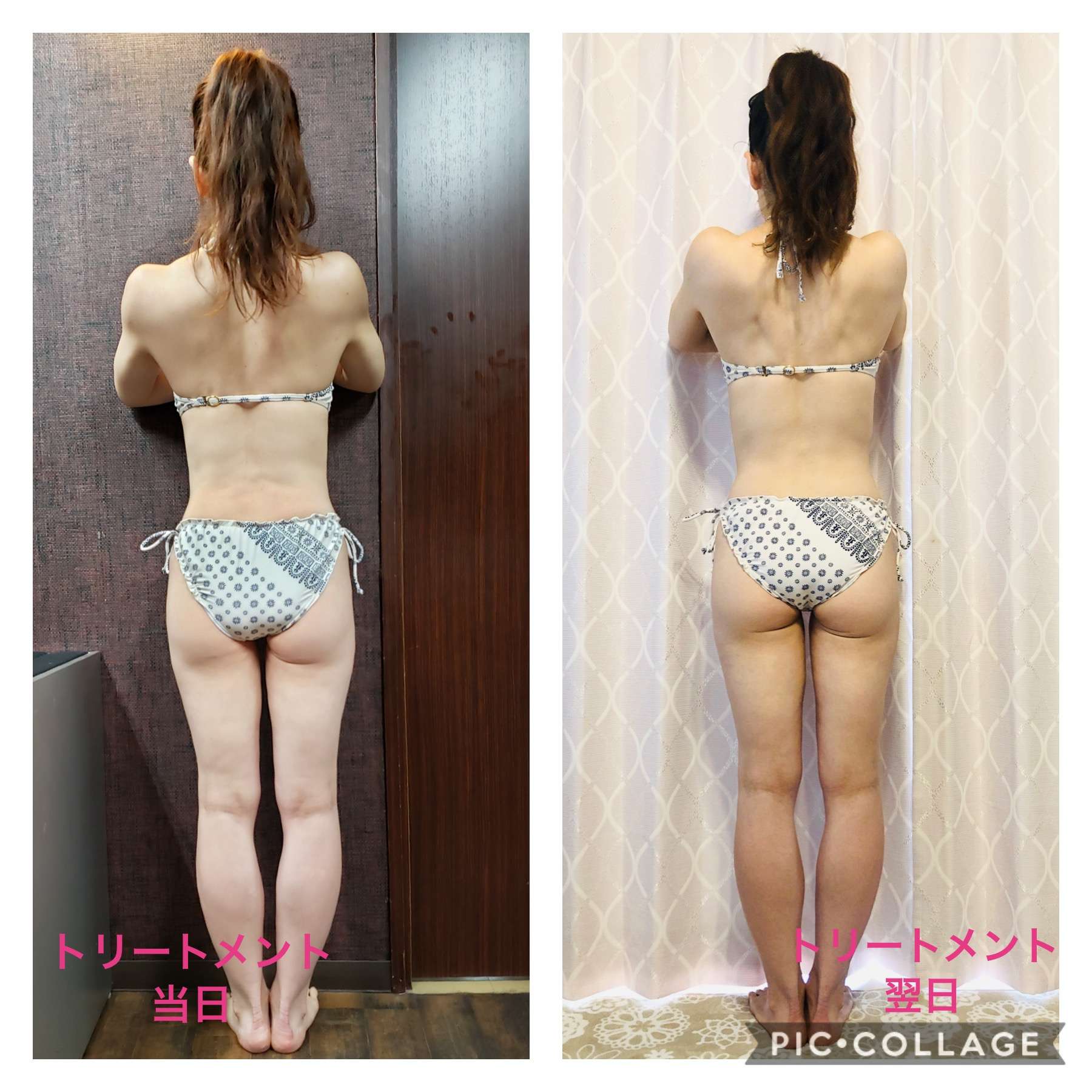 トリートメント当日と翌日を比べると確かに、ヒップラインが上がり綺麗になっています♪