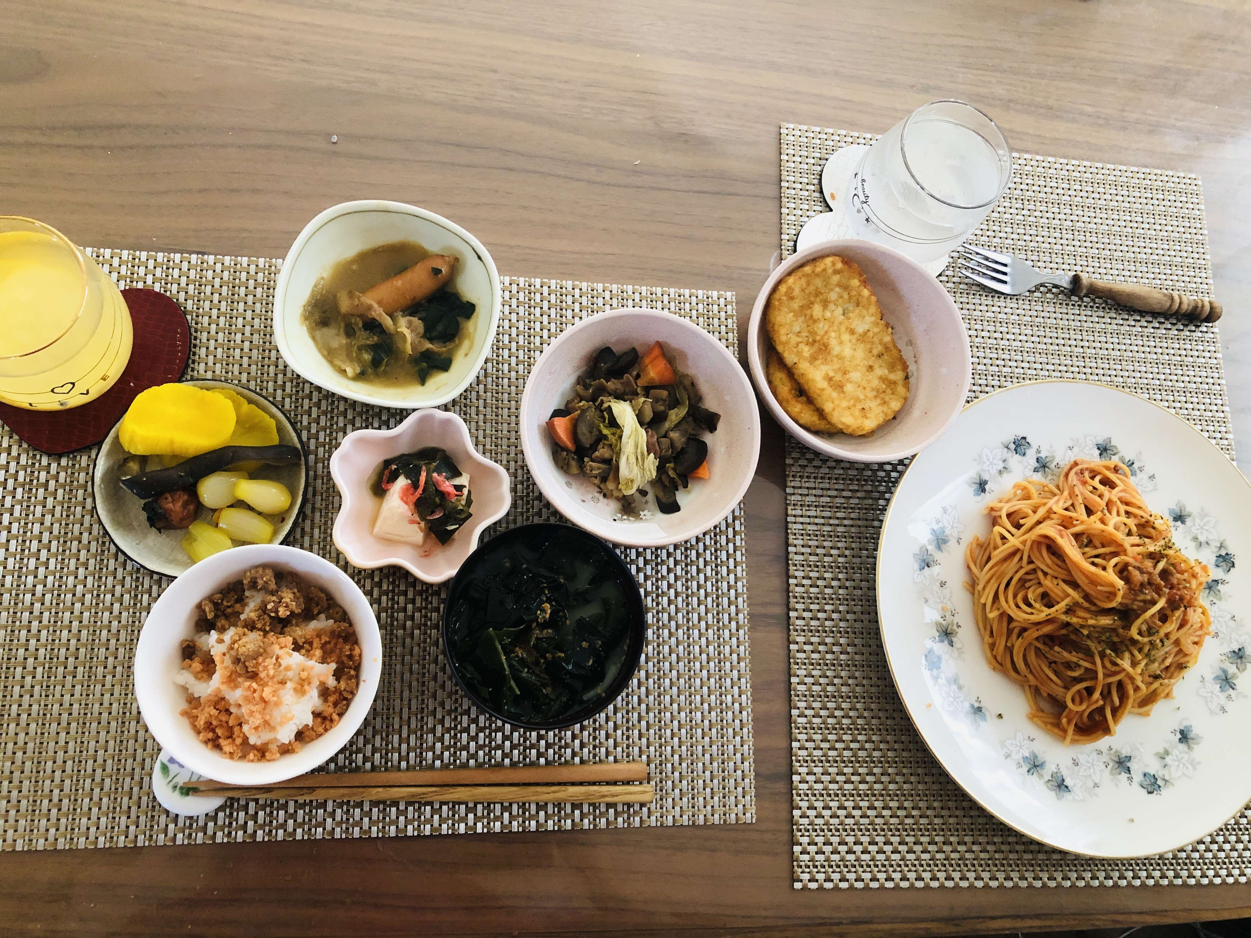 家族には、ボロネーゼパスタ🍝を作りましたが、小麦禁止の私はもちろん、健康的な和食♪