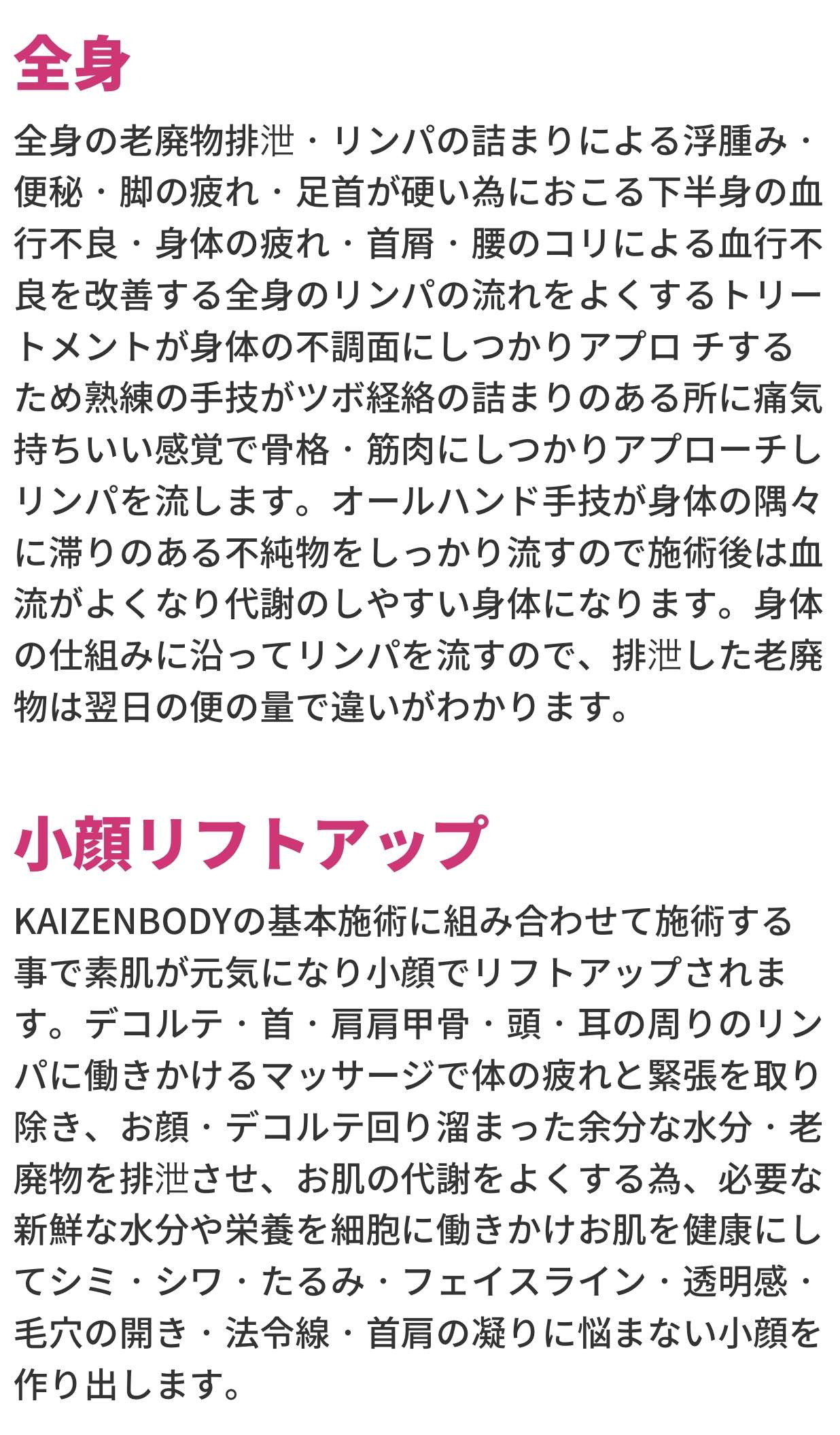 KAIZENBODY は、身体自体が改善に向け外側のみならず内側からデトックスされ綺麗に美しく、健康的にスタイルアップできる神業サロンです♡