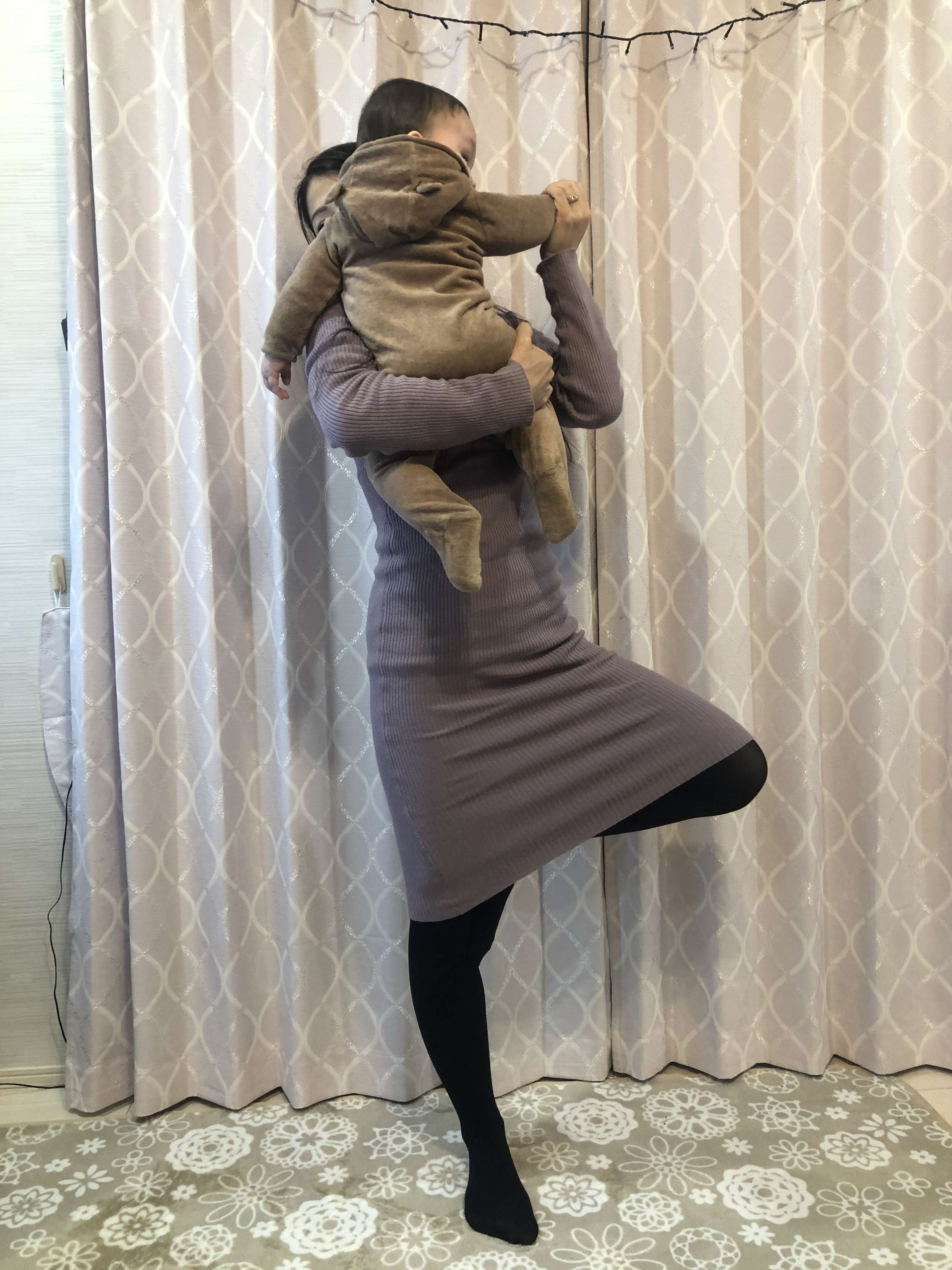 9kgの我が子を抱っこしながらバランスをとるのは至難の技!