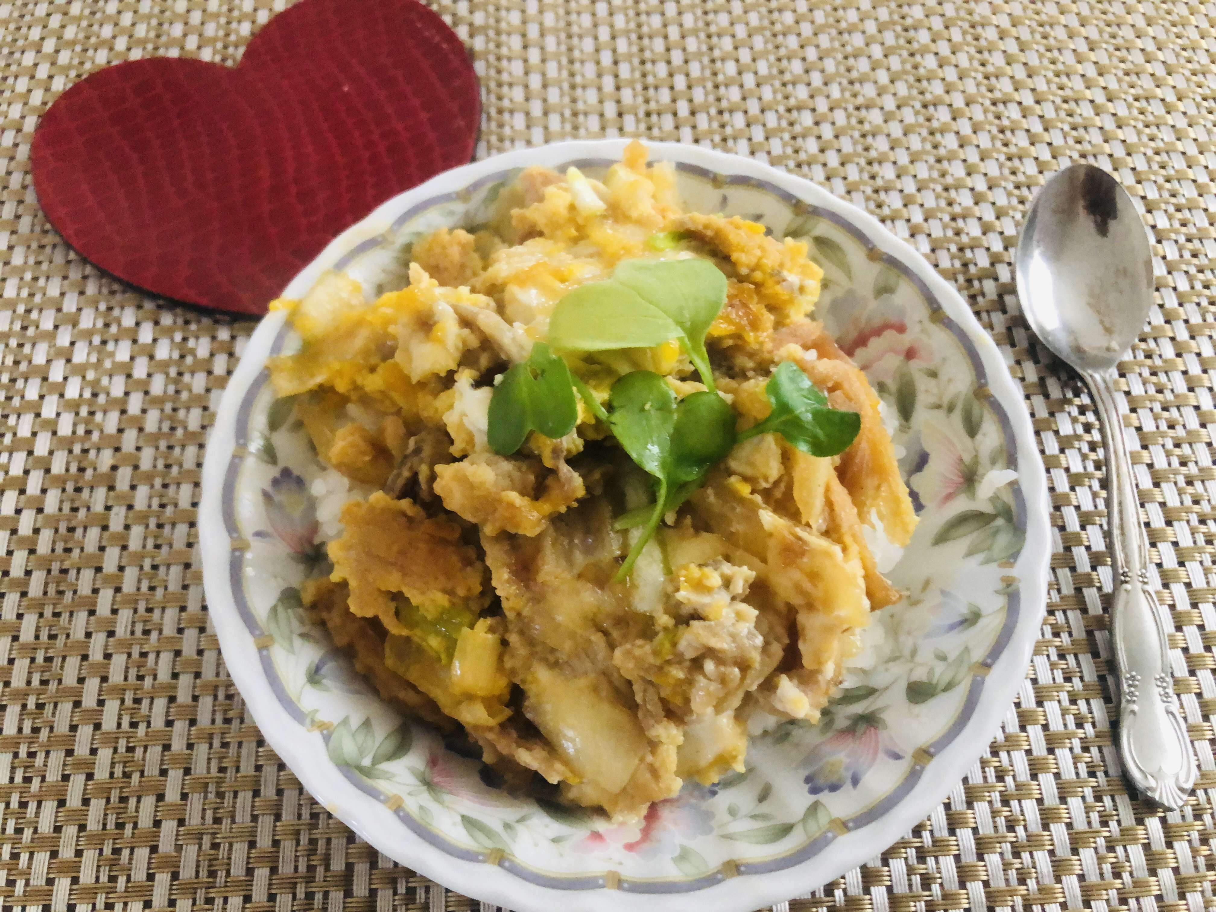 親子丼も、小さなスプーンで食べると、満腹感が増しました♪