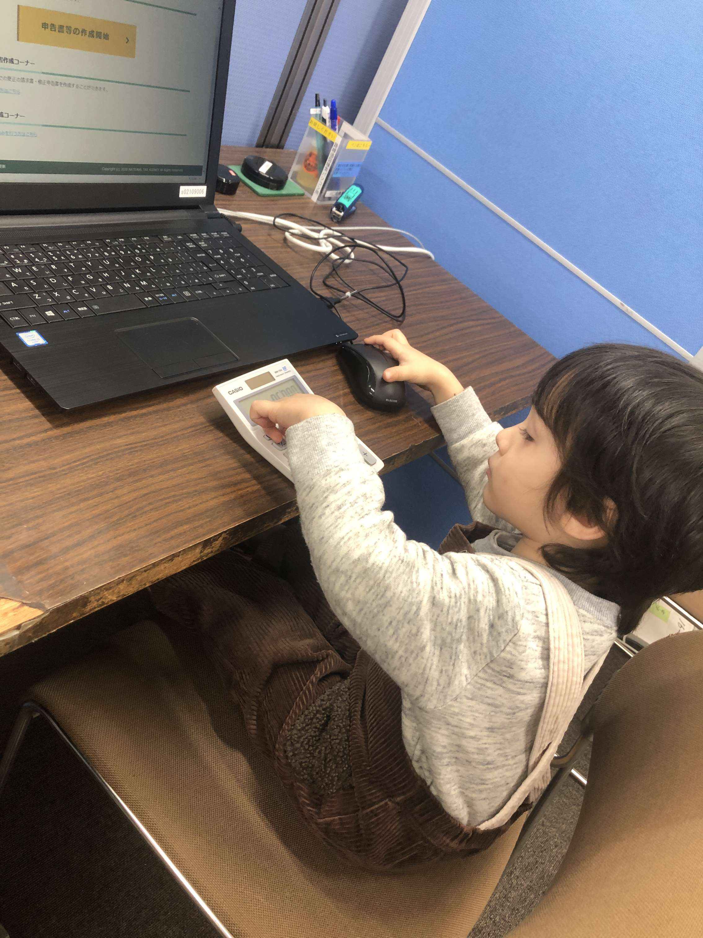 ちなみに、個人事業主なので年末駆け込みで午前中、税務署へ。Busy Busyと、海叶はママの真似でお仕事!笑。