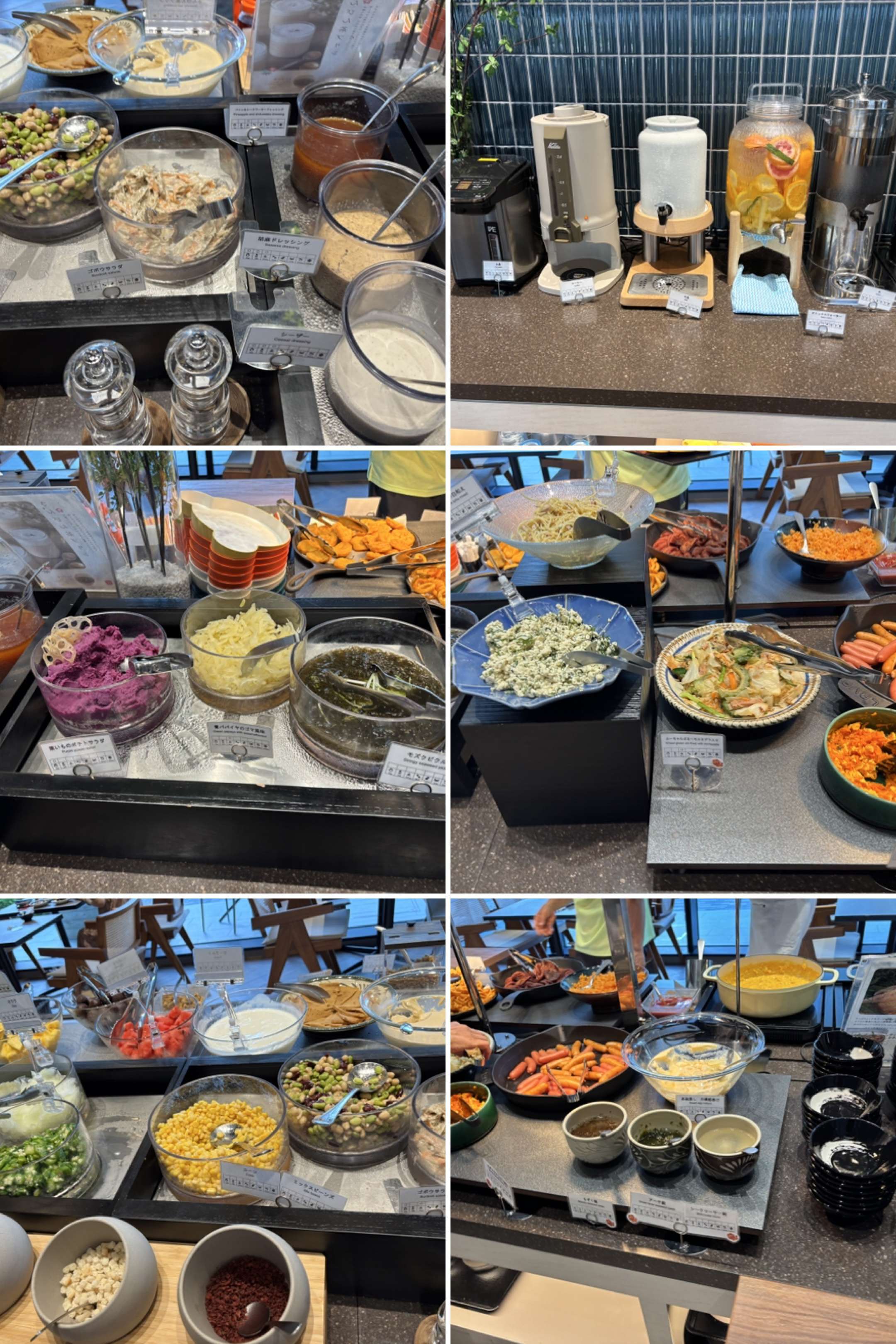 フローリングの床も気持ちよく、勿論お風呂やトイレの水廻りも新しくて気持ちよかった。何より沖縄の風土を感じる地産地消の食材、季節ごとの旬の食材をふんだんに使った、和と洋の料理をビュッフェが最高だった。あまりの美味しさに食べ過ぎてしまいお昼ご飯だけでなく、夕ご飯さえ食べられなかった。久しぶりにホテルのビュッフェで美味しくて満足できた。朝から手巻き寿司までできるし、沖縄料理も食べられる。品数も多くて、ドラゴンフルーツのスムージーが美味しくてピンクの色にもときめいた。