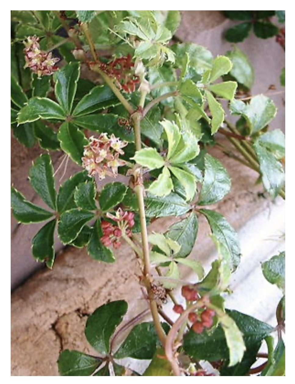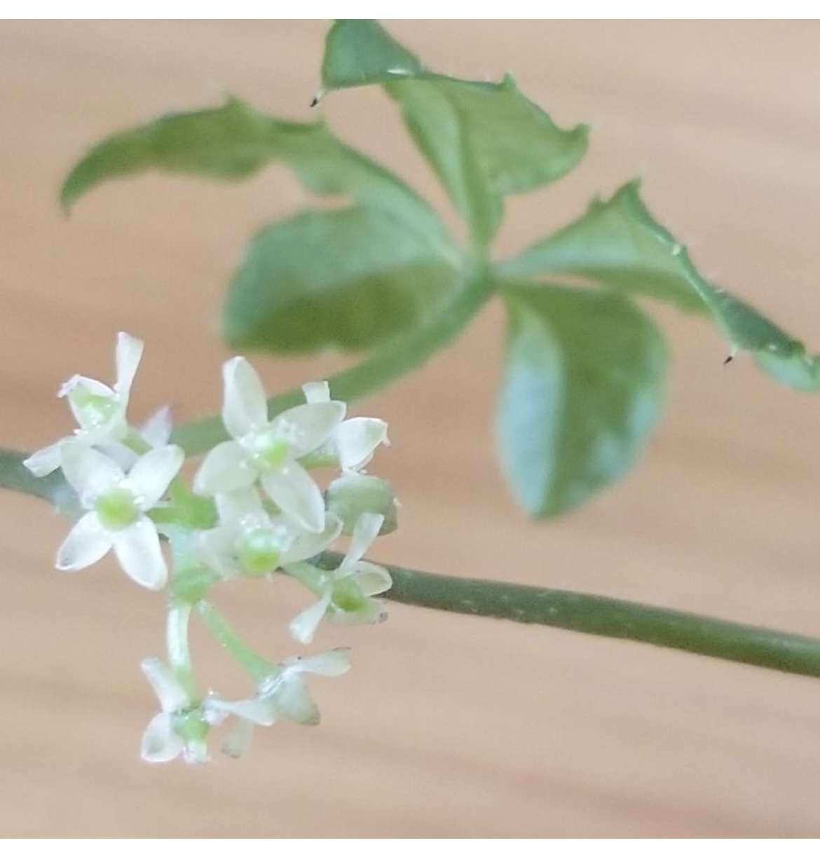 1つに5枚の葉っぱがついた緑です。