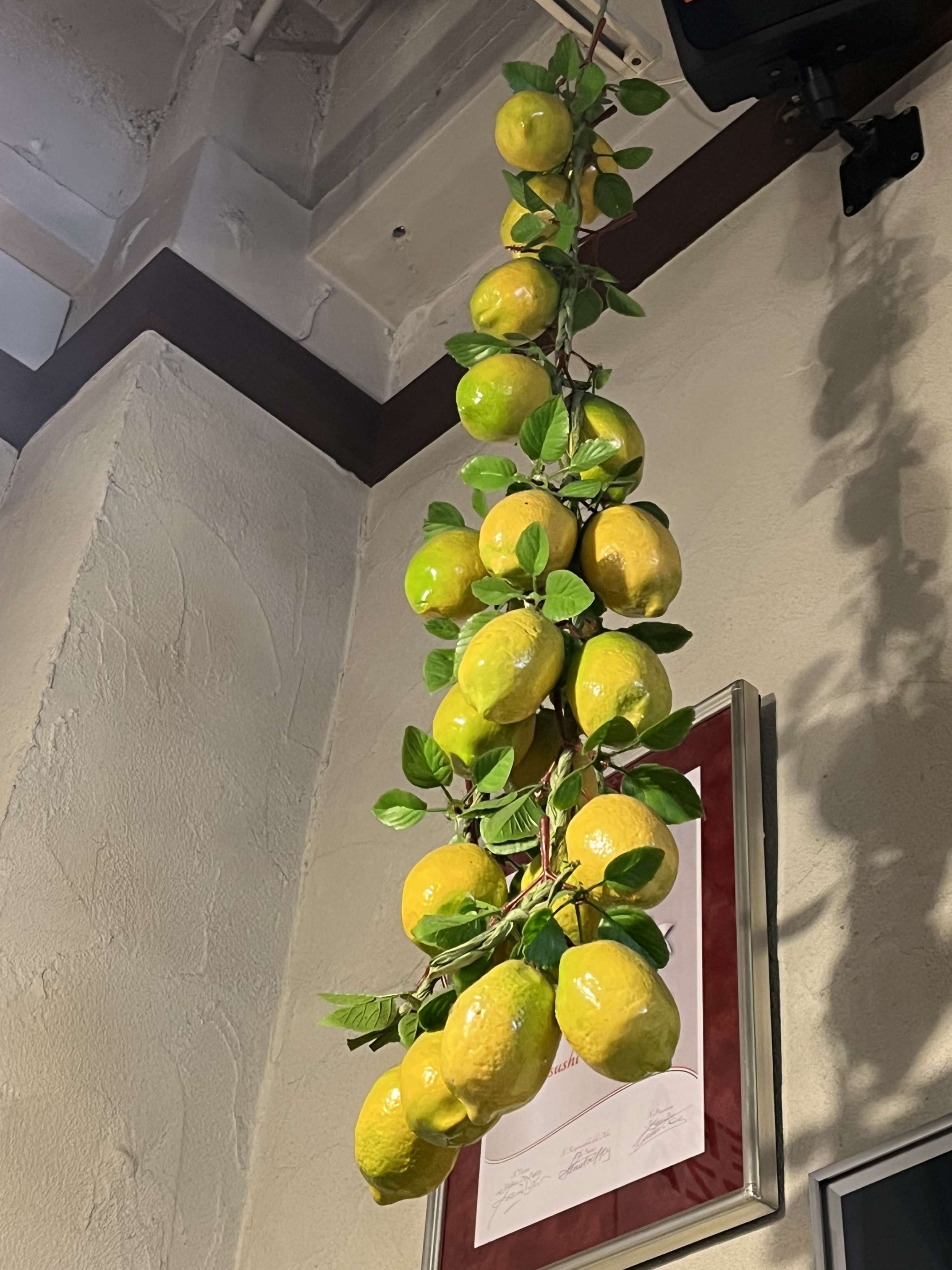 以前行ったお店の天井からレモンが‼️可愛いです💛