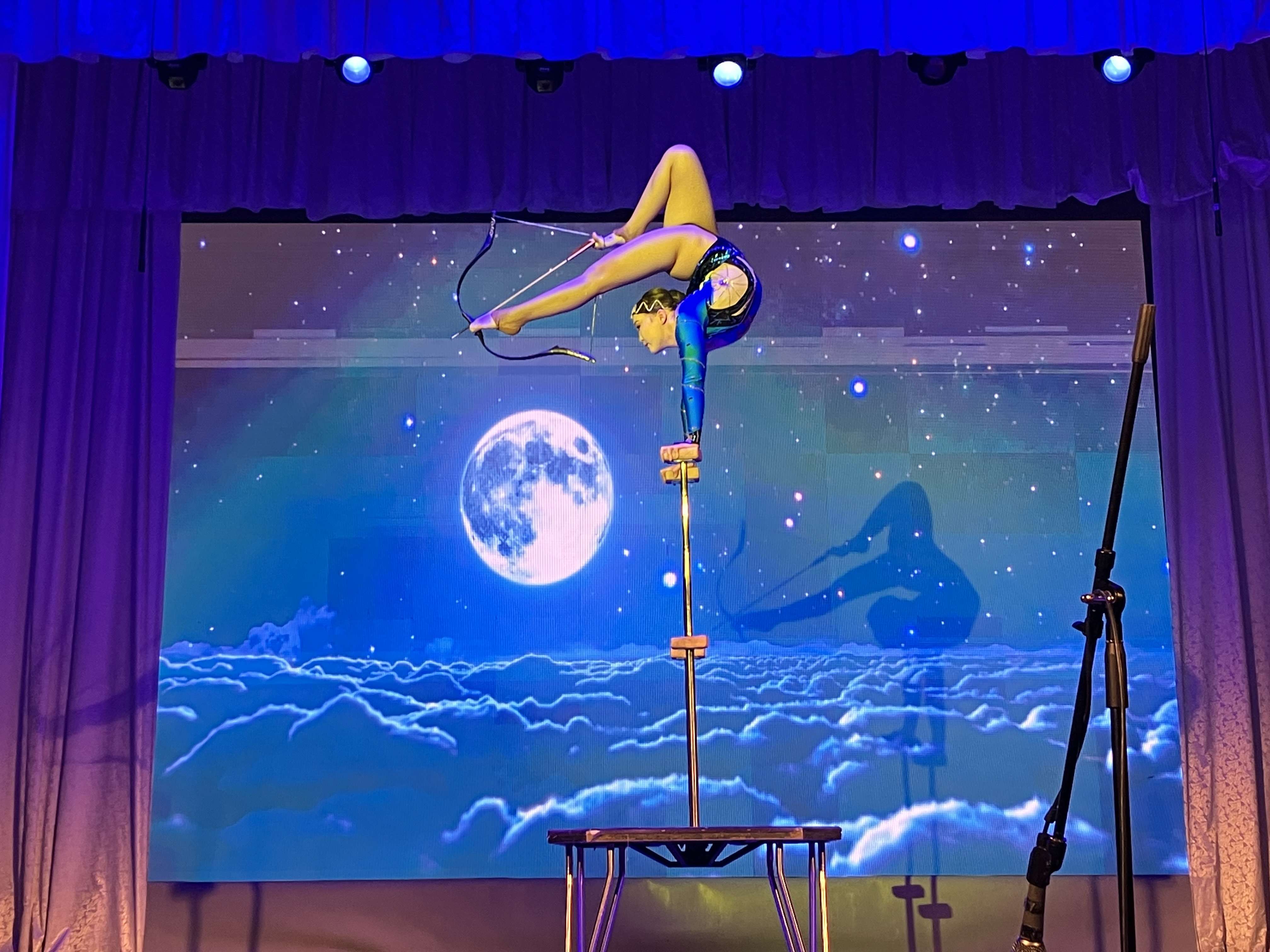 モンゴルの伝統的な民族舞踊や歌を鑑賞しました。素敵な音楽と踊りで、とても楽しい時間でした。特に身体が柔らかい方のパフォーマンスが素晴らしかったです。後ろの月の背景とポーズが綺麗でした。