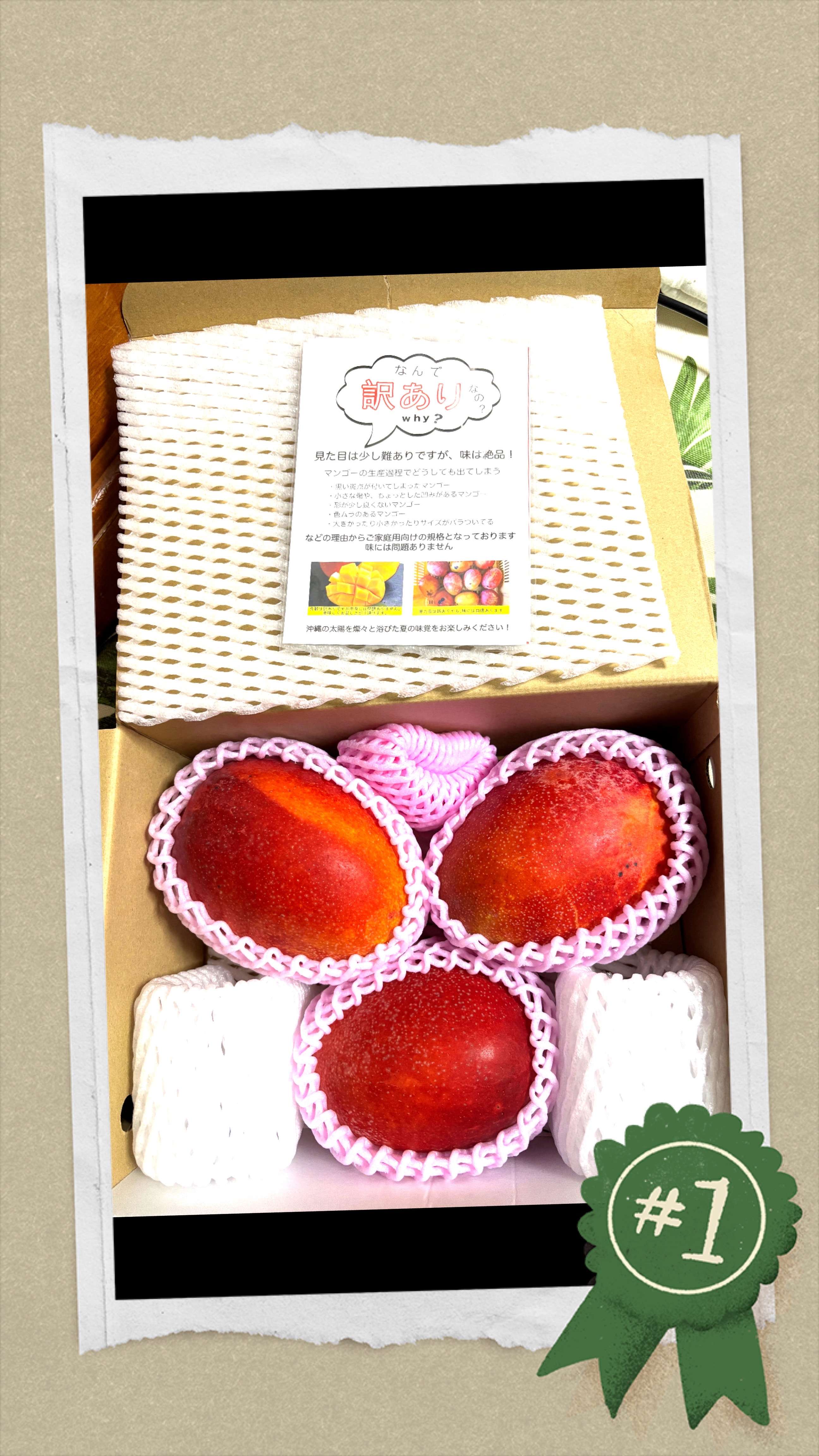 食べ頃の立派なマンゴーが3つ。冷蔵庫で冷やしておいたマンゴーをいただいた。甘くてジューシーで最高!