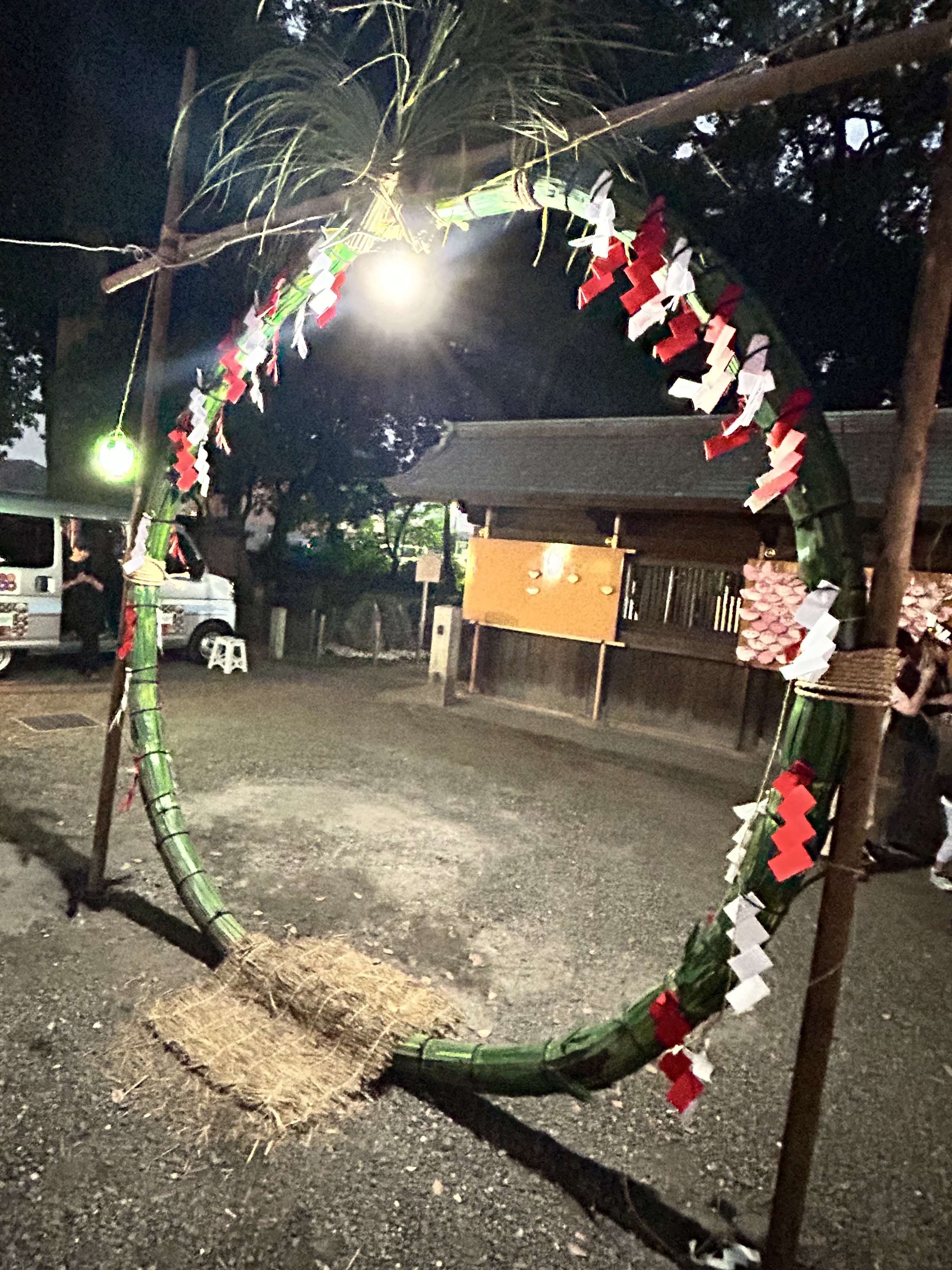 帰ってすぐに母に「輪くぐり行く?」と言われ、昨年20時くらいに行ったら明かりが消えて終わっていたのを思い出し、夕飯前に行ってきました。