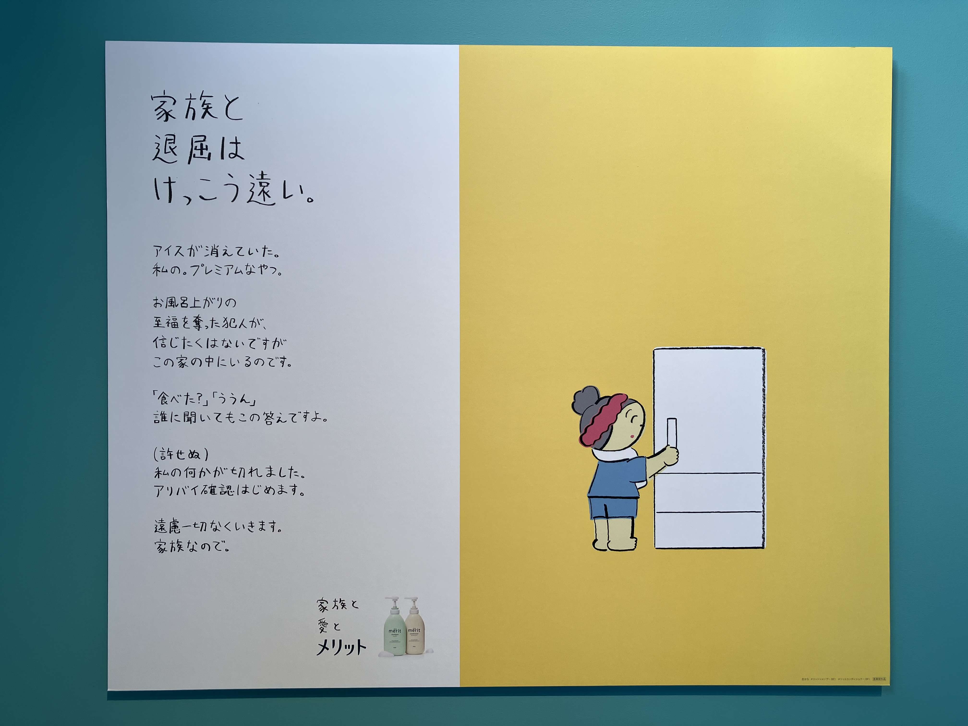 下北沢で開催中の家族と愛とメリット展へ行ってきました。イラストが可愛く癒されました。お洒落なステッカーシールも頂いたのでお気に入りのノートに早速貼りました。展示物は共感するものが多く、面白かったです。