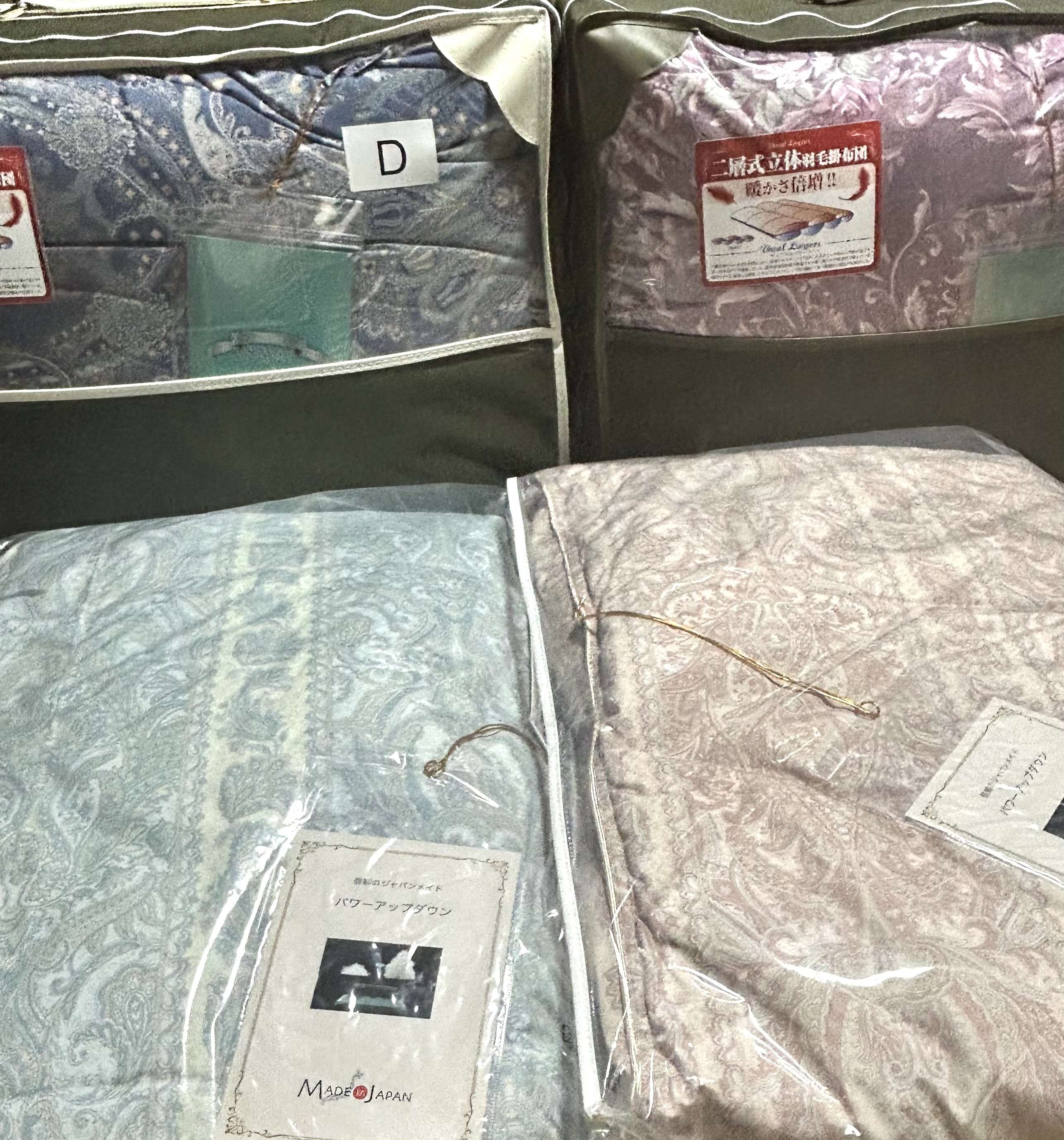 友達おすすめの、合い掛けと夏用を2つ重ねて冬用にするタイプを探してましたが、お店の方のおすすめは、重ねるよりも冬用1枚の方が温かいみたいです。