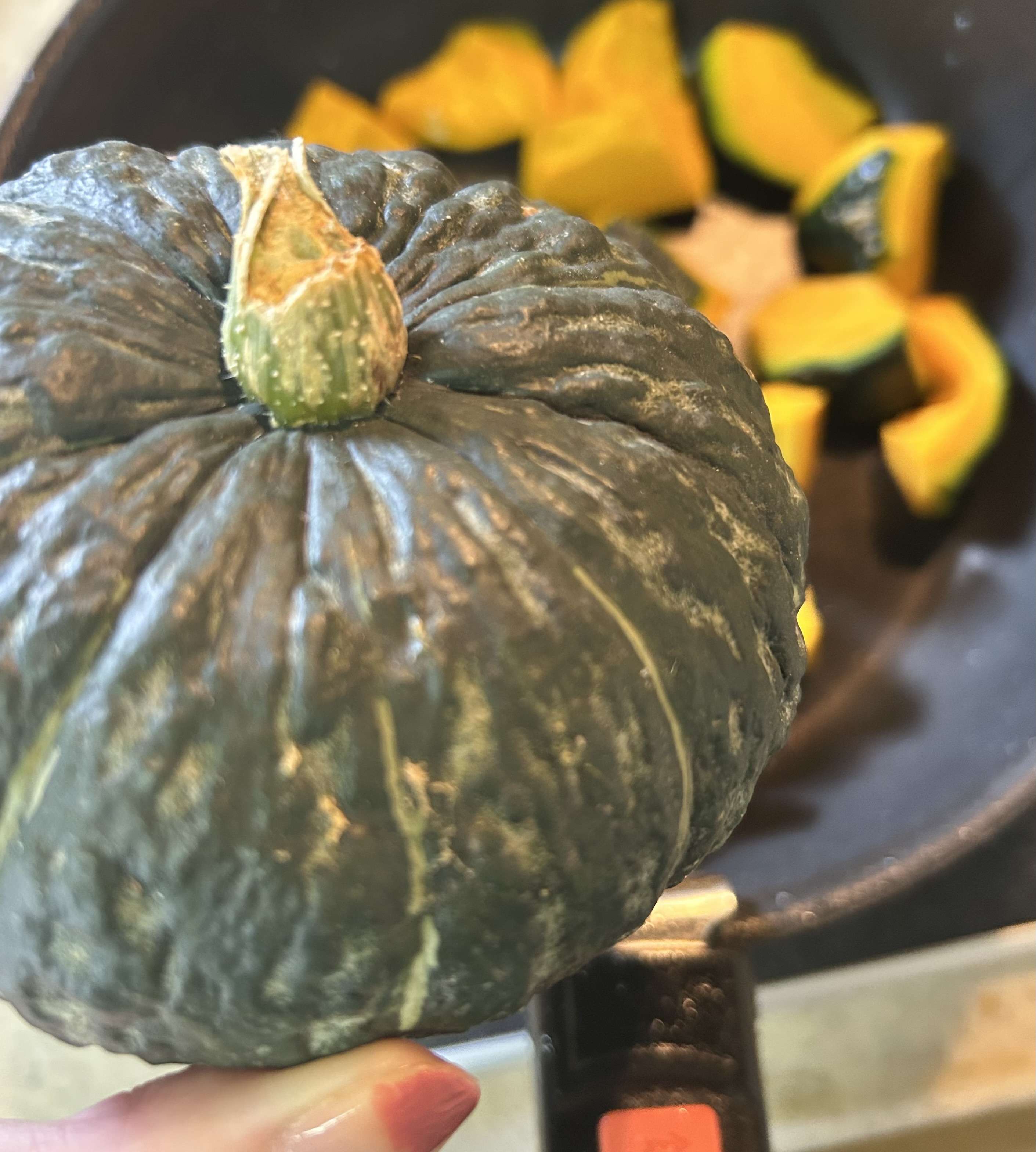 姉のお義母さんが畑で作られたかぼちゃをお裾分けいただいたので、煮物を作りました。