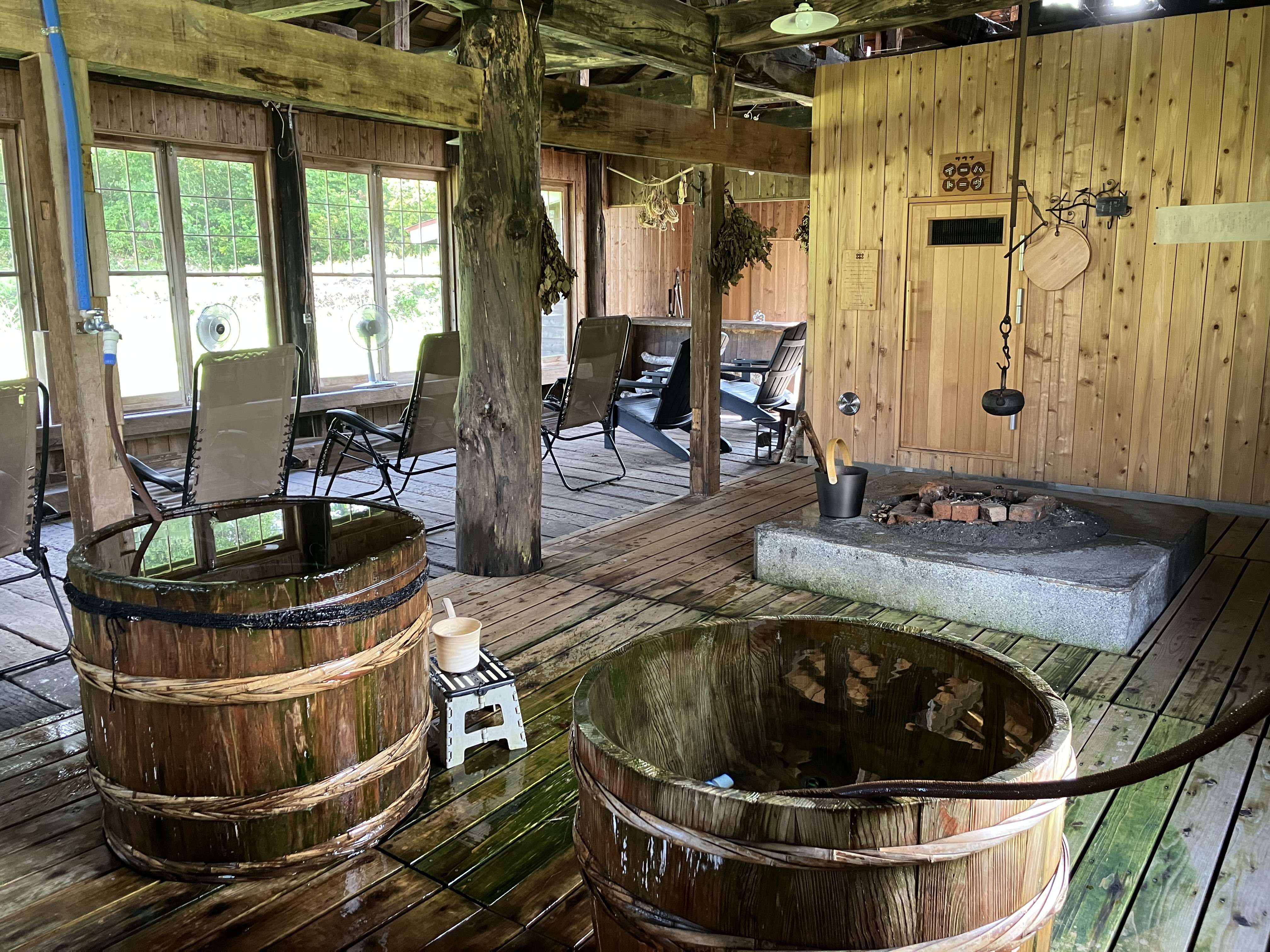 一泊目は、岩手県の七時雨山荘で星空サウナと朝サウナを楽しみました。薪サウナと冷たい山の天然水の水風呂がとっても気持ちよかったです。外の高原でみた星空が綺麗で感動しました。ブレインスリープのマットで横になり、自然と一体化しながら整う時間は最高の経験でした。