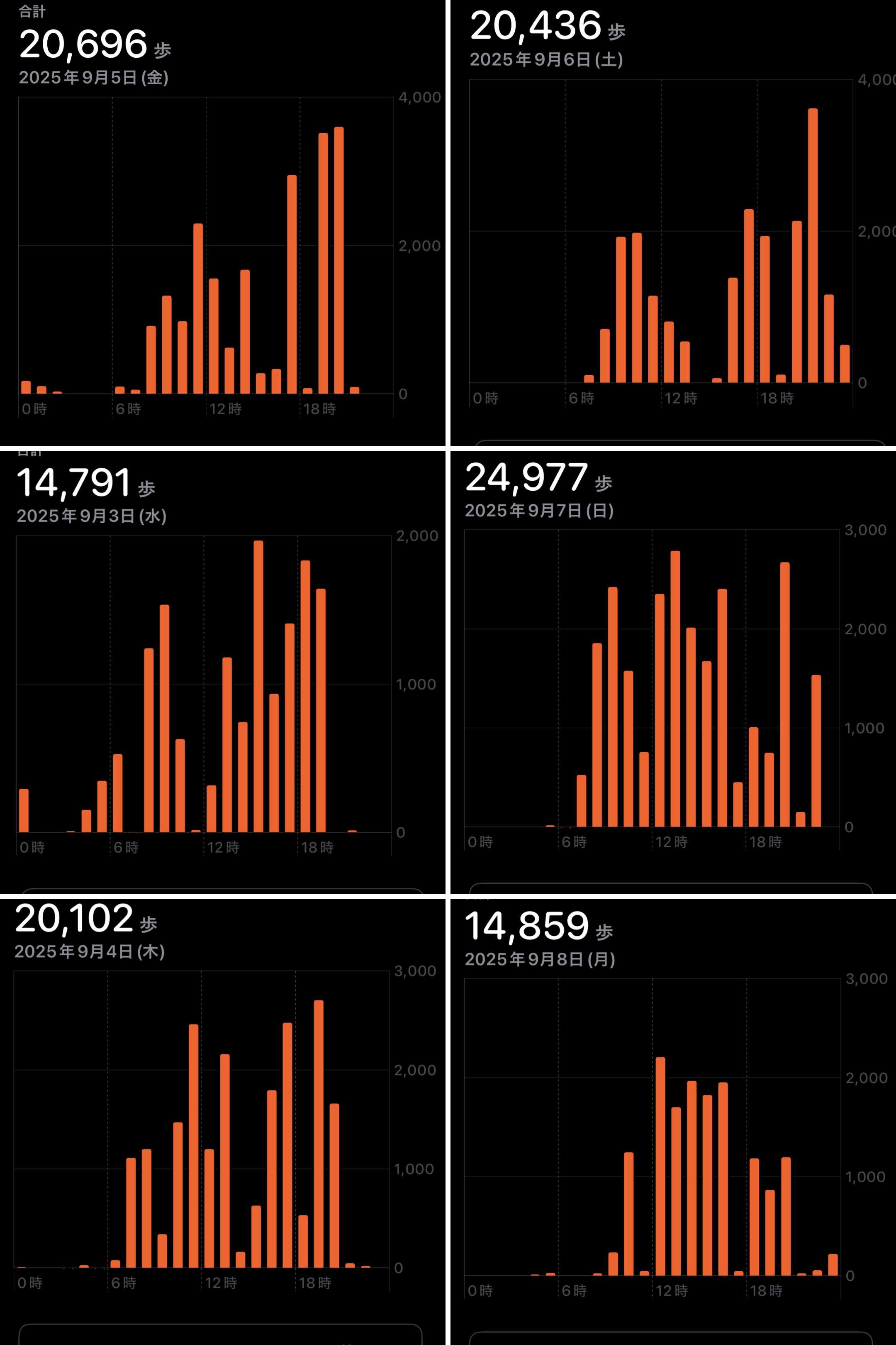 初日と帰国日は2万歩いかなかった。それでもよく歩いた。