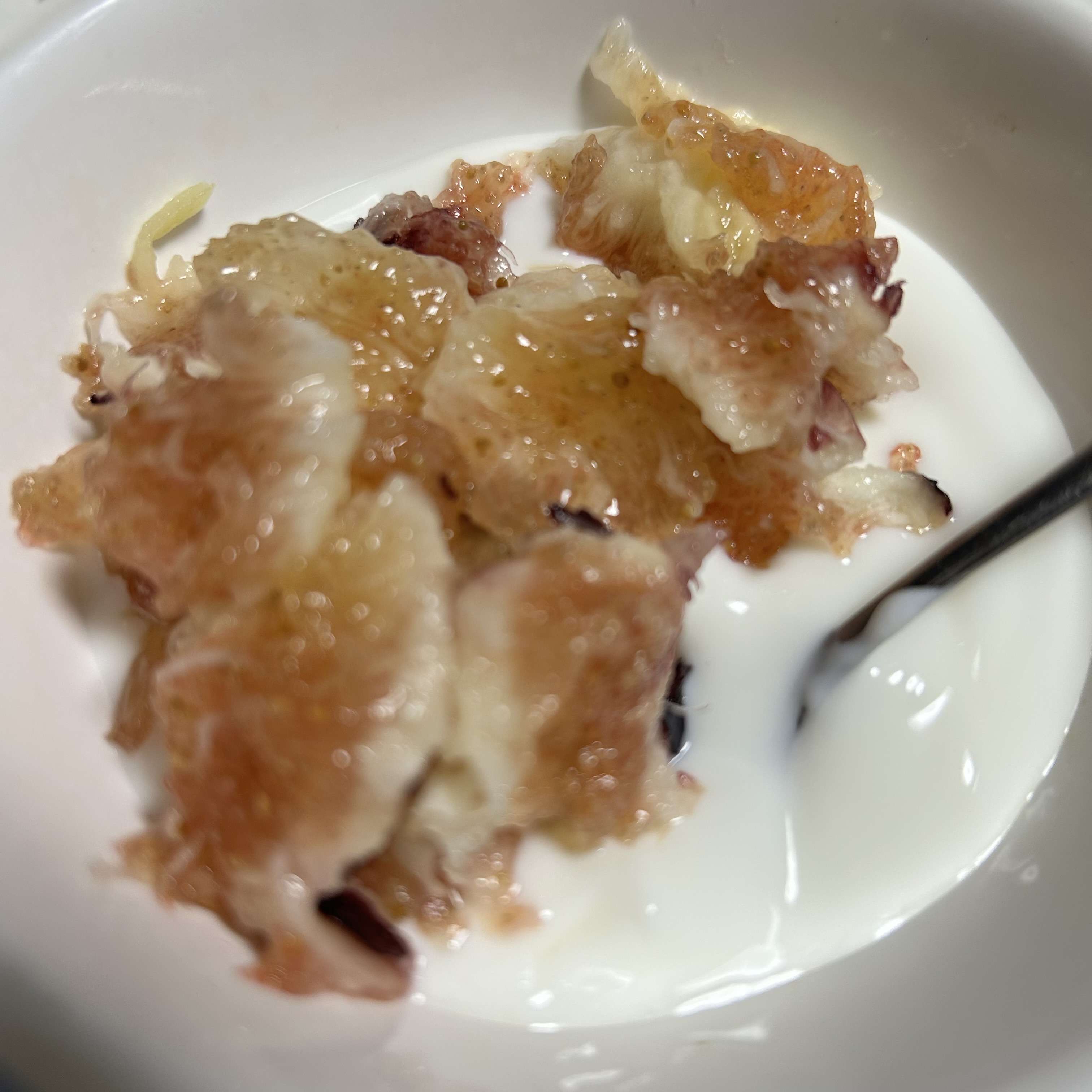 ちょうど夕飯時間だったので、食後のヨーグルトに入れました。