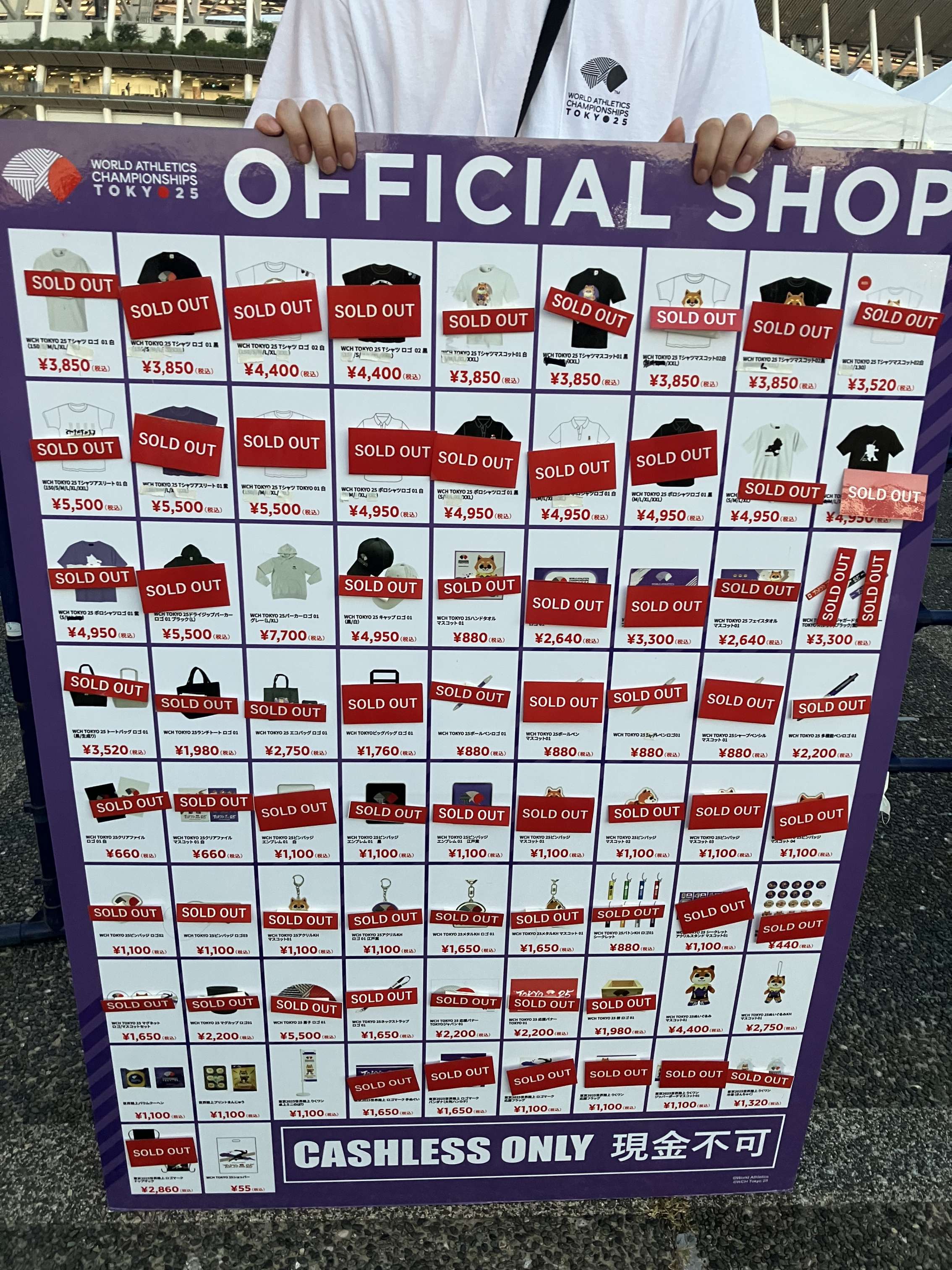 世界陸上のグッズはほぼ売り切れでした。大人気です。
