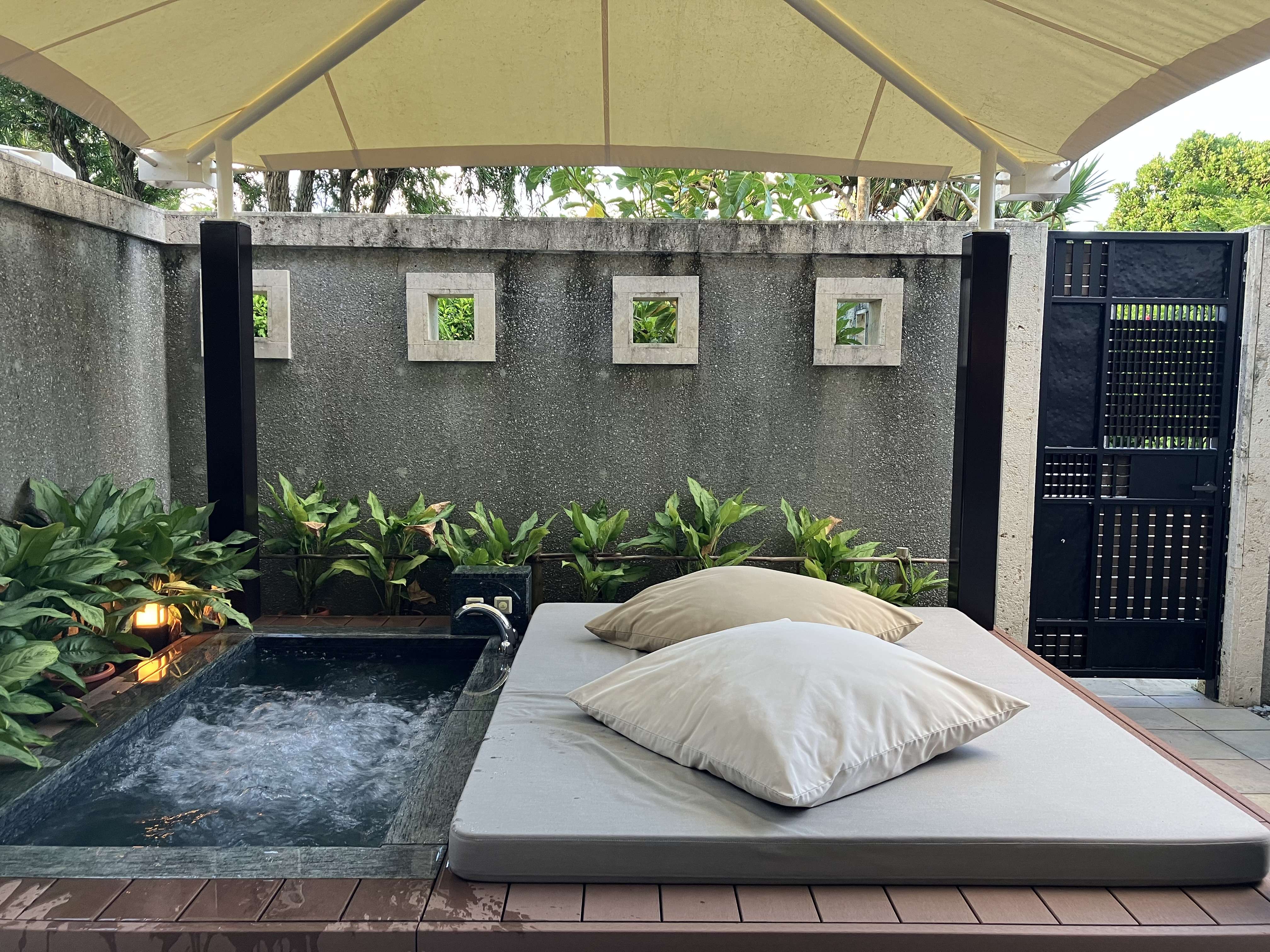 リッツカールトン沖縄に宿泊しました。部屋から直接屋外プールに行けるカバナルームにしました。テラスにジェットバスも付いていて気持ちよかったです☺️