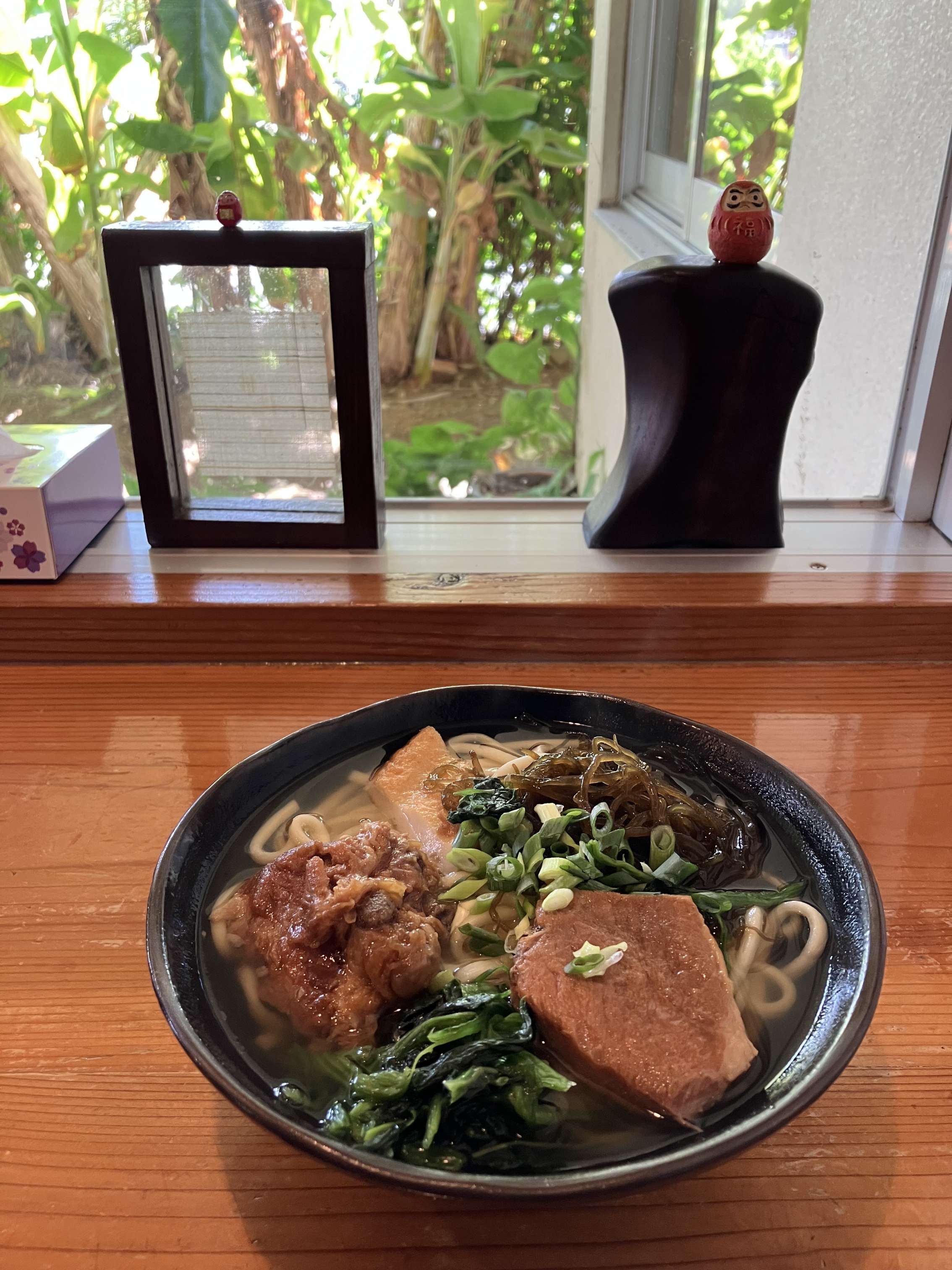 ランチは古謝そば屋さんへ。昼時は過ぎていましたが、大行列でした。追加注文したもずくも絶品でした。