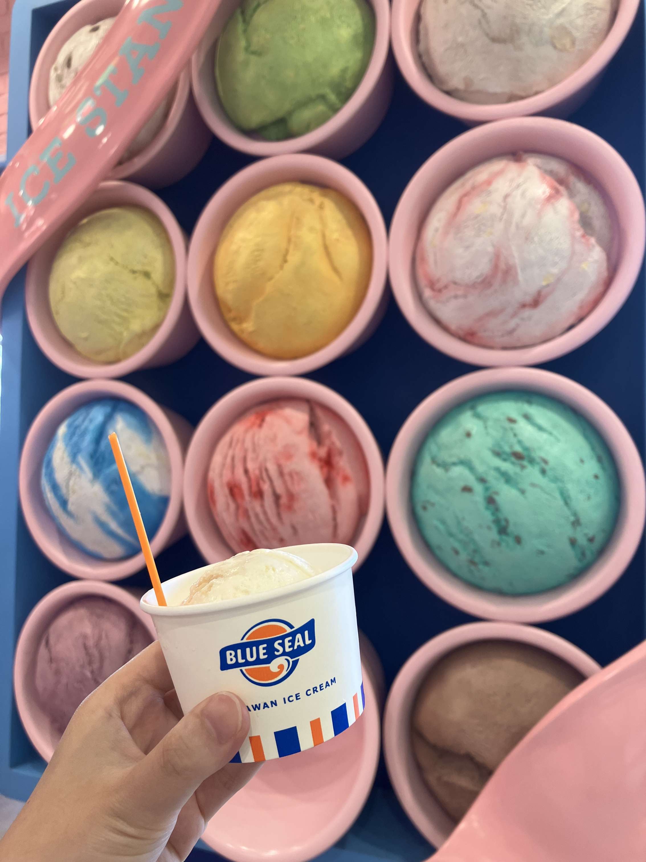 旅の最後にブルーシールで塩ちんすこう味のアイスを食べました。フォトブースがたくさんあり可愛かったです。滞在中、ダブルレインボーや満天の星空をみることかでき良い思い出になりました。