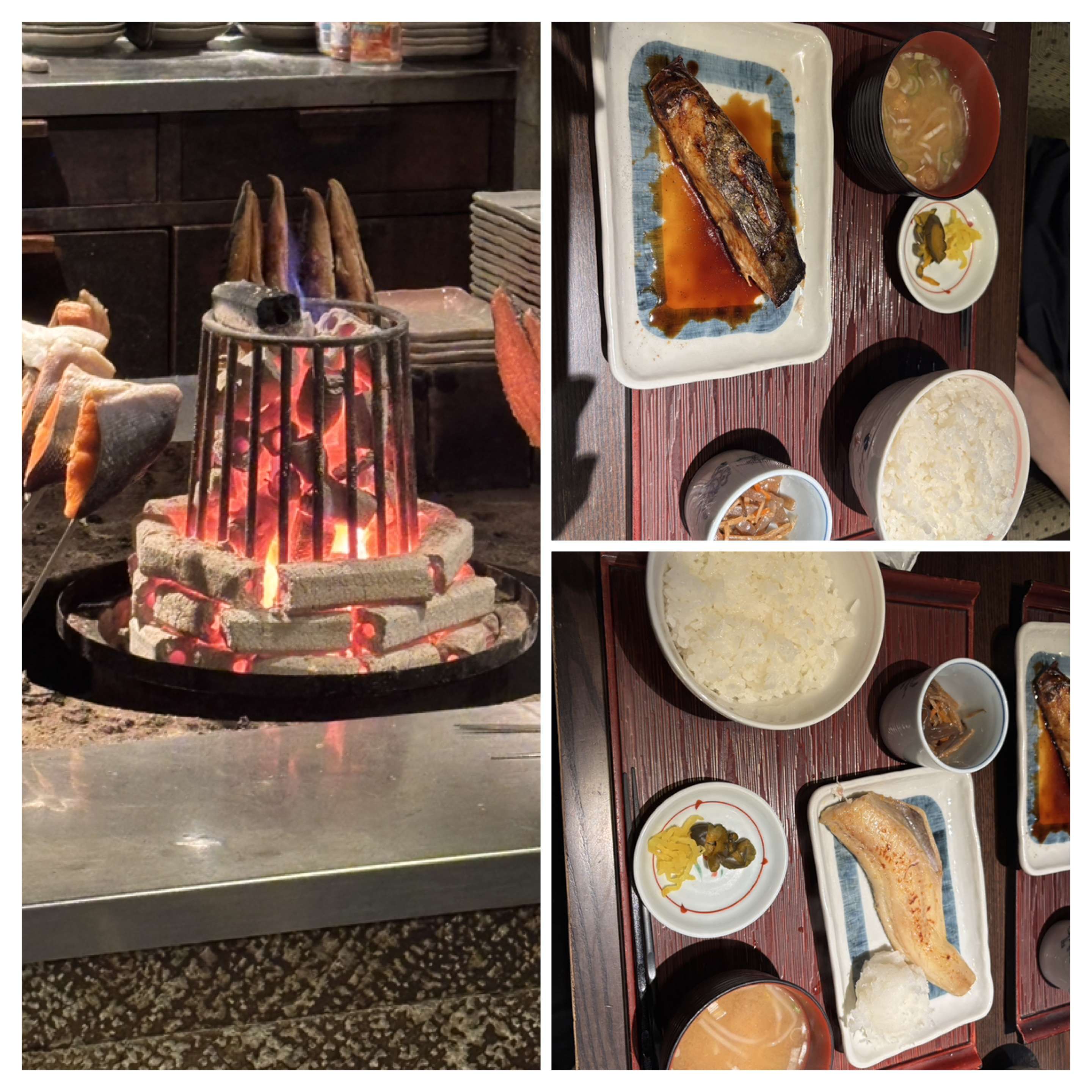 炉で焼かれた魚は本当に美味しくて、ご飯(白米)もお味噌も小鉢もおいしかった。大満足。