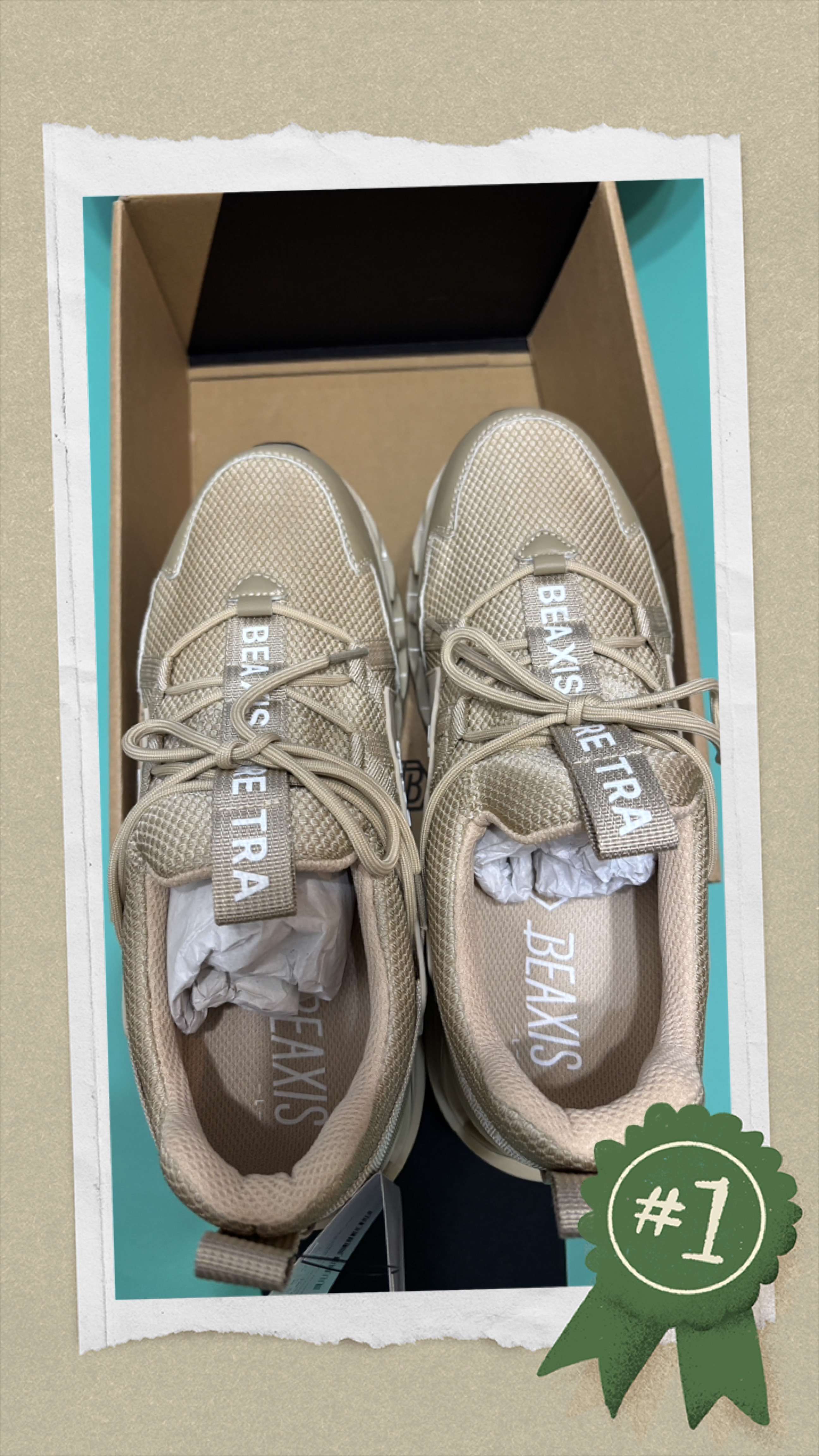 そんなところにBEAXISのスニーカーで新色のベージュが発売されたと聞き購入しようと思った。洋服以上に靴は試してみてからでないと合わない恐れがあり、新宿マルイで試し履きした。新しいBEAXISバランスコアスニーカー3がよかったが、私のサイズ(25センチ)は作っていなくて、バランスコアスニーカー2.5を試してみた。Mサイズ(24〜24.5センチ)は履けたけれど足先に余裕がなくて、長時間歩いたら足が痛くなりそうだった。Lサイズ(25〜25.5センチ)を勧められた。