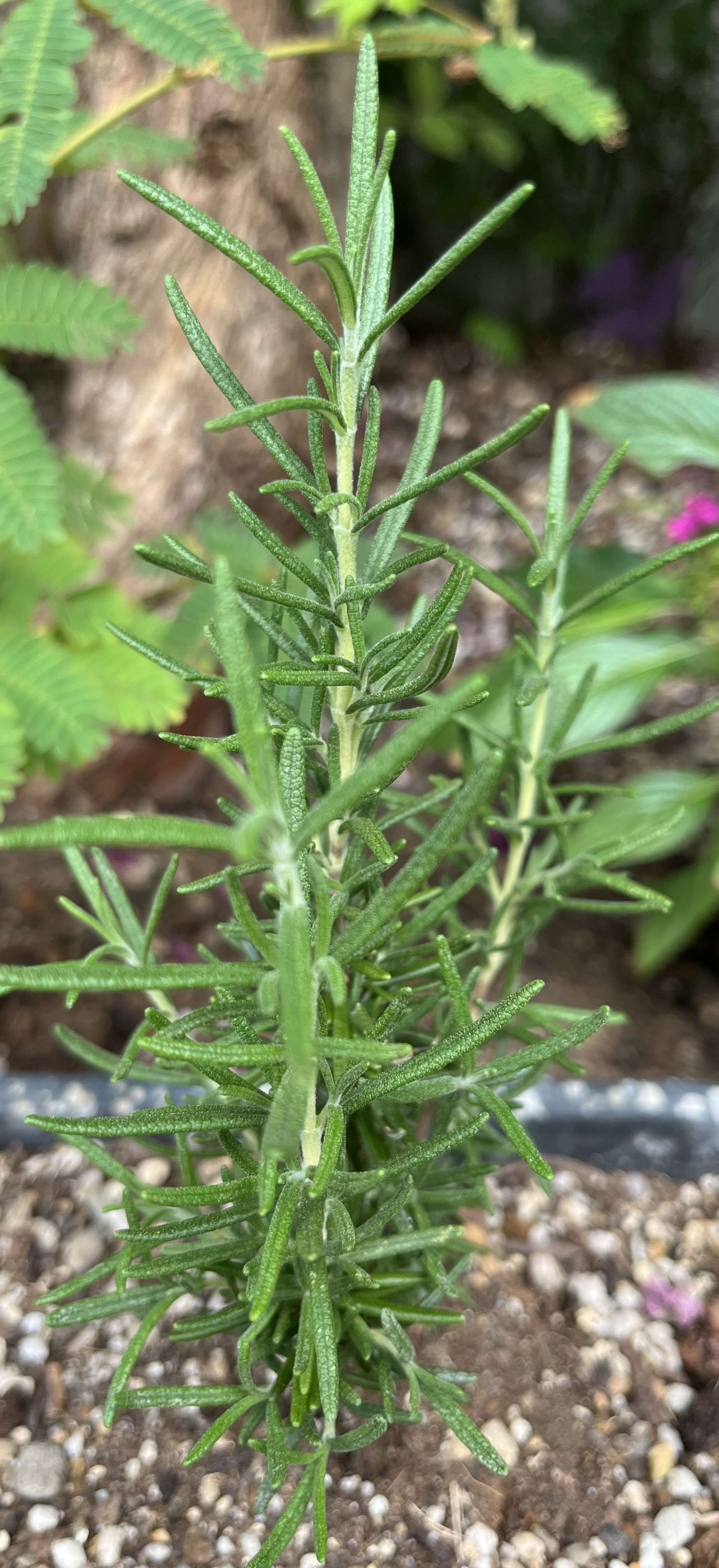 ローズマリーです。匂いが好きで、何ヶ所かに植えてあります。