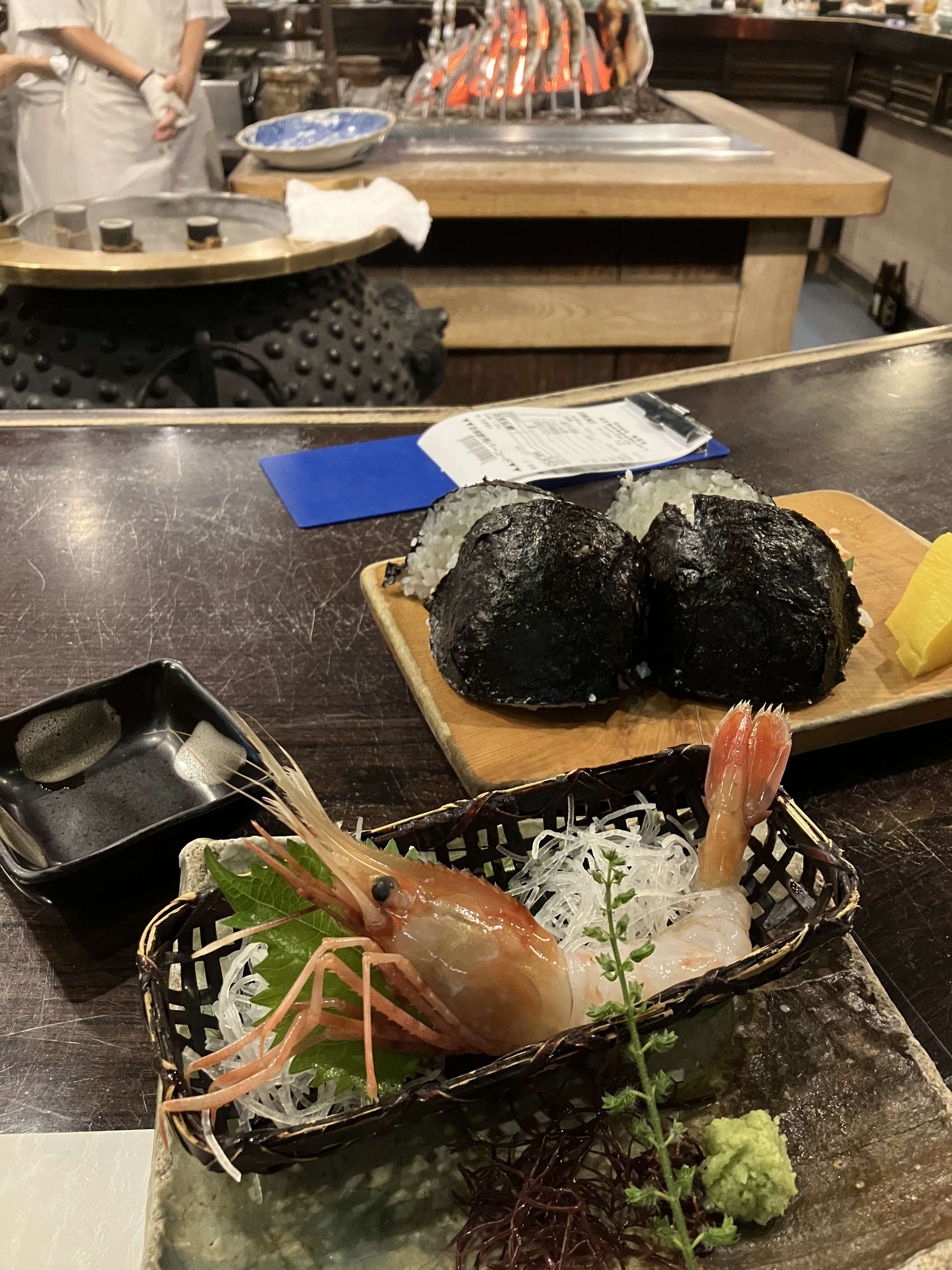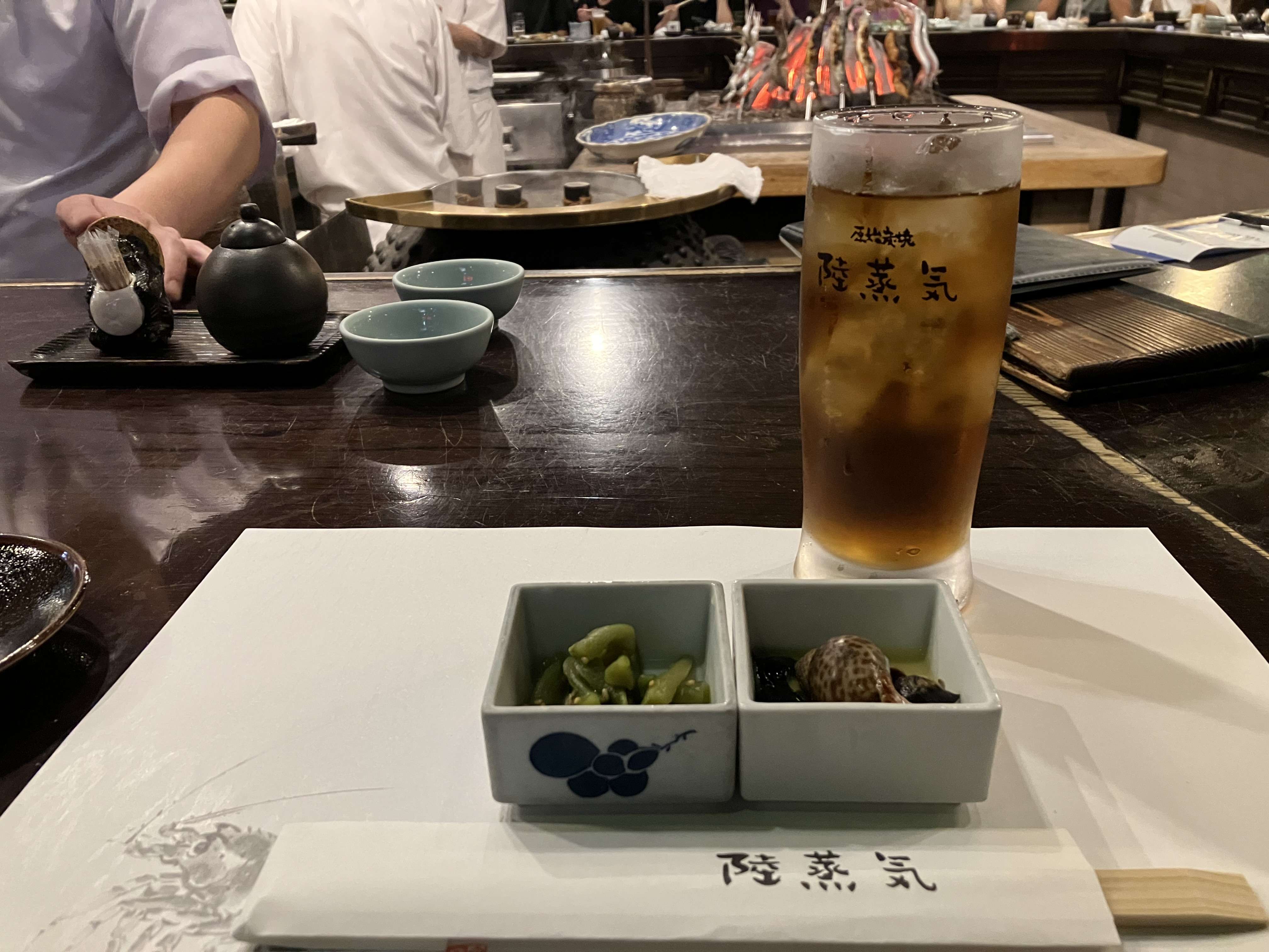 陸蒸気に夕食を食べに行きました。1人で行く時はランチで利用しますが、今回は初めて夜に行きました。甘エビは食べ終わると頭の部分を焼いてくれます。ぱりぱりの食感で美味しかったです。中に入っている味噌も絶品でした。