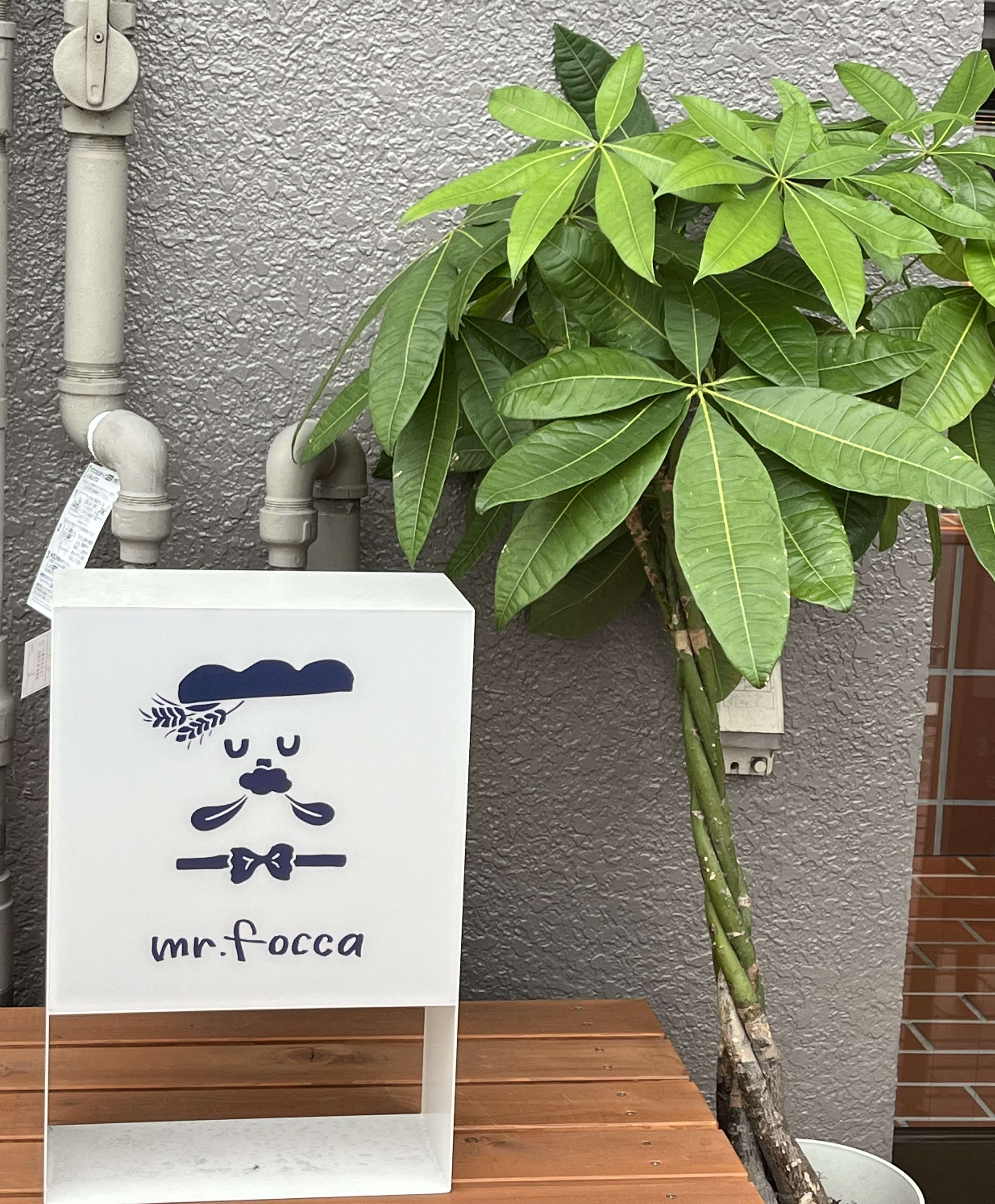 入口には、可愛い看板〔似顔絵なのかしら〕と大きなパキラでした