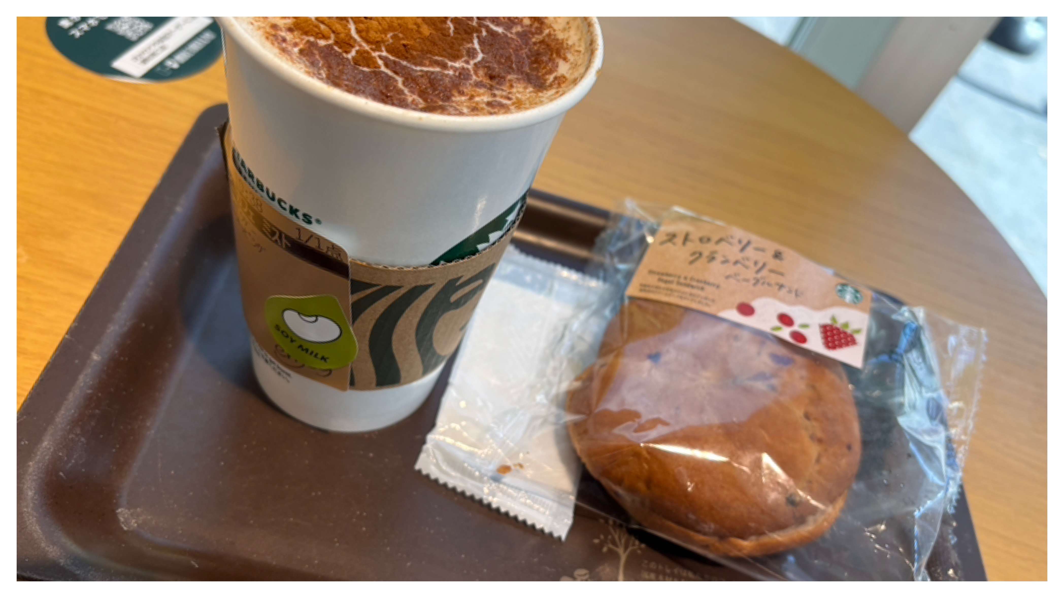 今日は朝活マシンピラティス(リフォーマーを使ってのyoga)をやって、KAIZENBODY の施術までに2時間時間が空いたのでスタバて早めのお昼ご飯をいただくところだ。ソイミストにたっぷりのシナモンを振りかけてもらった。