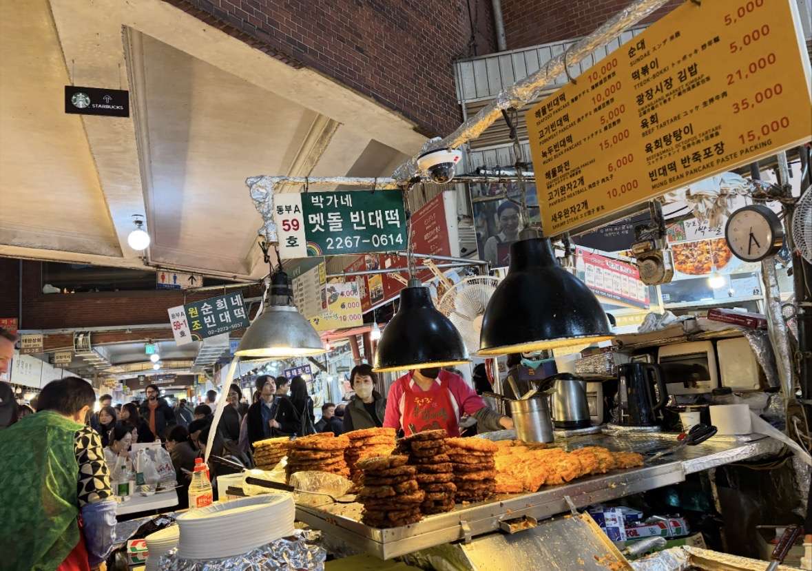 ソウルの大人気市場「広蔵市場(クァンジャンシジャン)」は、日本では感じにくい「ザ・アジア!」が感じられる市場です。市場内は広く、主に東側の屋台通りやユッケ通りが人気で、市場グルメがランチや軽食、夕食の居酒屋に利用できます。カフェやおやつ系屋台も多く、ツイストドーナツことクァベギ店や、レトロスタバが注目。市場の西側はお買い物・お土産系の店舗が集まっていて、キムチやカンジャンケジャンが買えるお惣菜店、生地屋、古着店などが細い路地にひしめき合っています。最寄り駅は地下鉄1号線の「鐘路5街(チョンノオーガ)駅」で、7番・8番出口方面から屋台通りに入れ、東大門(トンデムン)エリアからも徒歩圏内です】コネストより