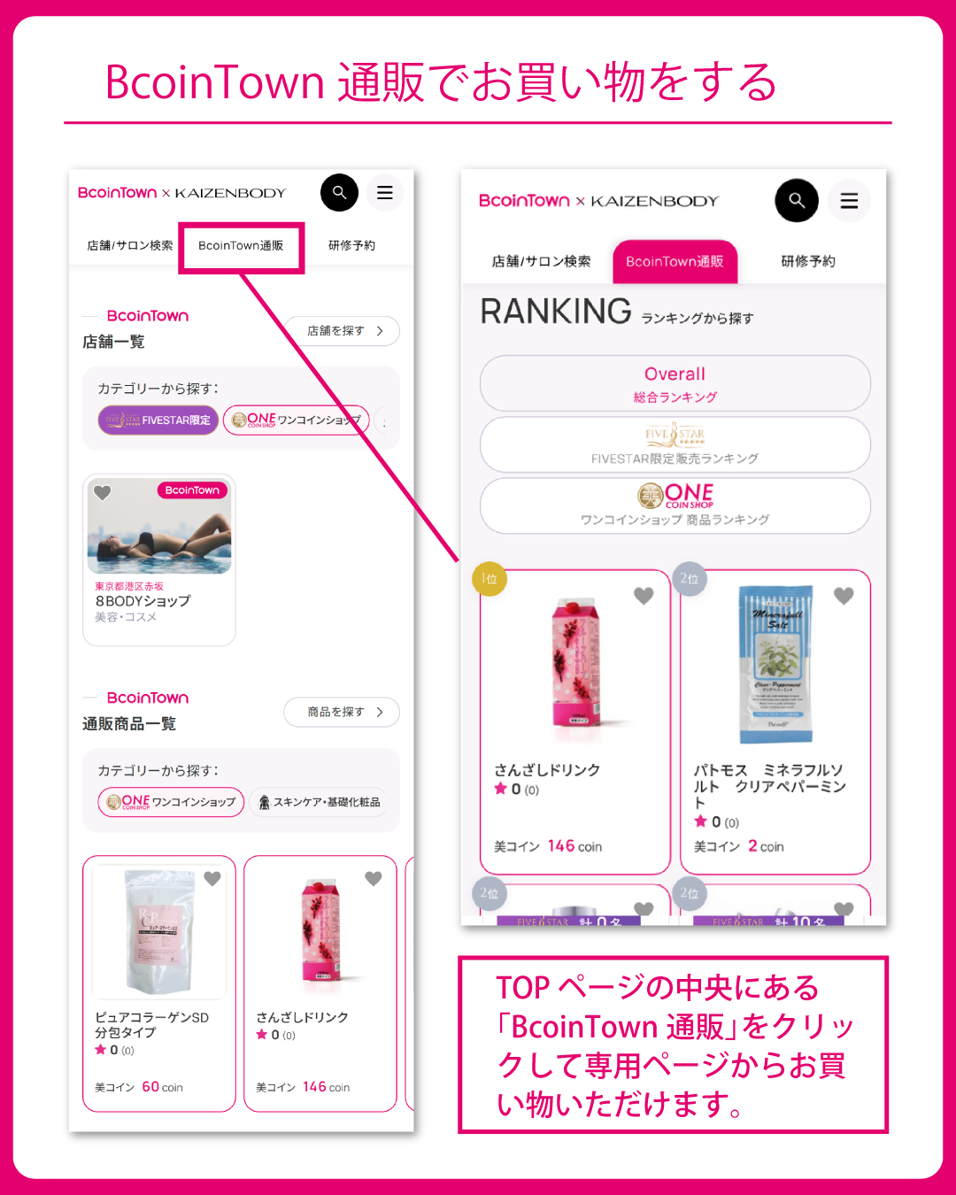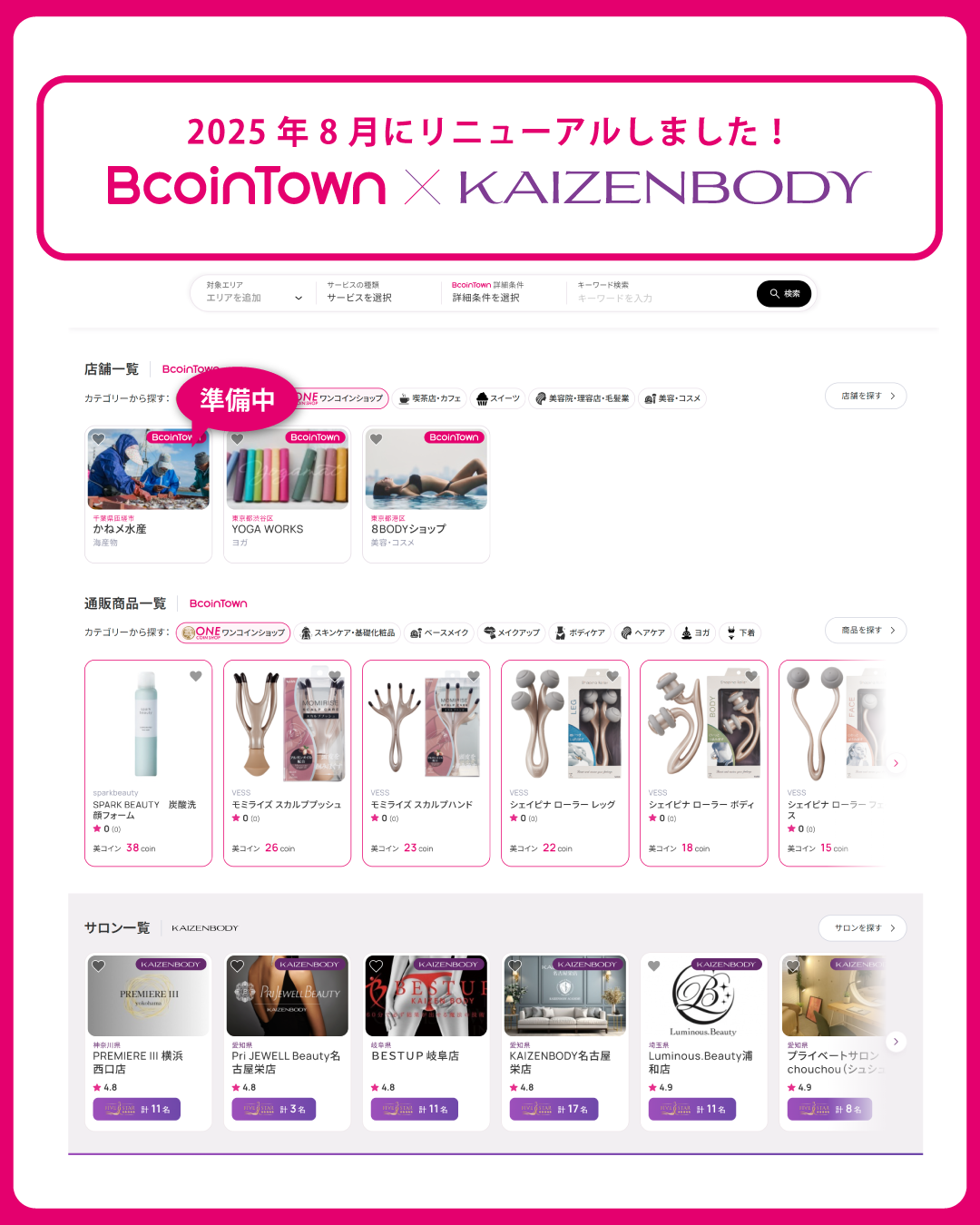 これまでたくさんのお客様にご利用いただいた美コインショッピングモールが、2025年8月より「BcoinTown(ビコインタウン)」としてリニューアルオープンいたしました!