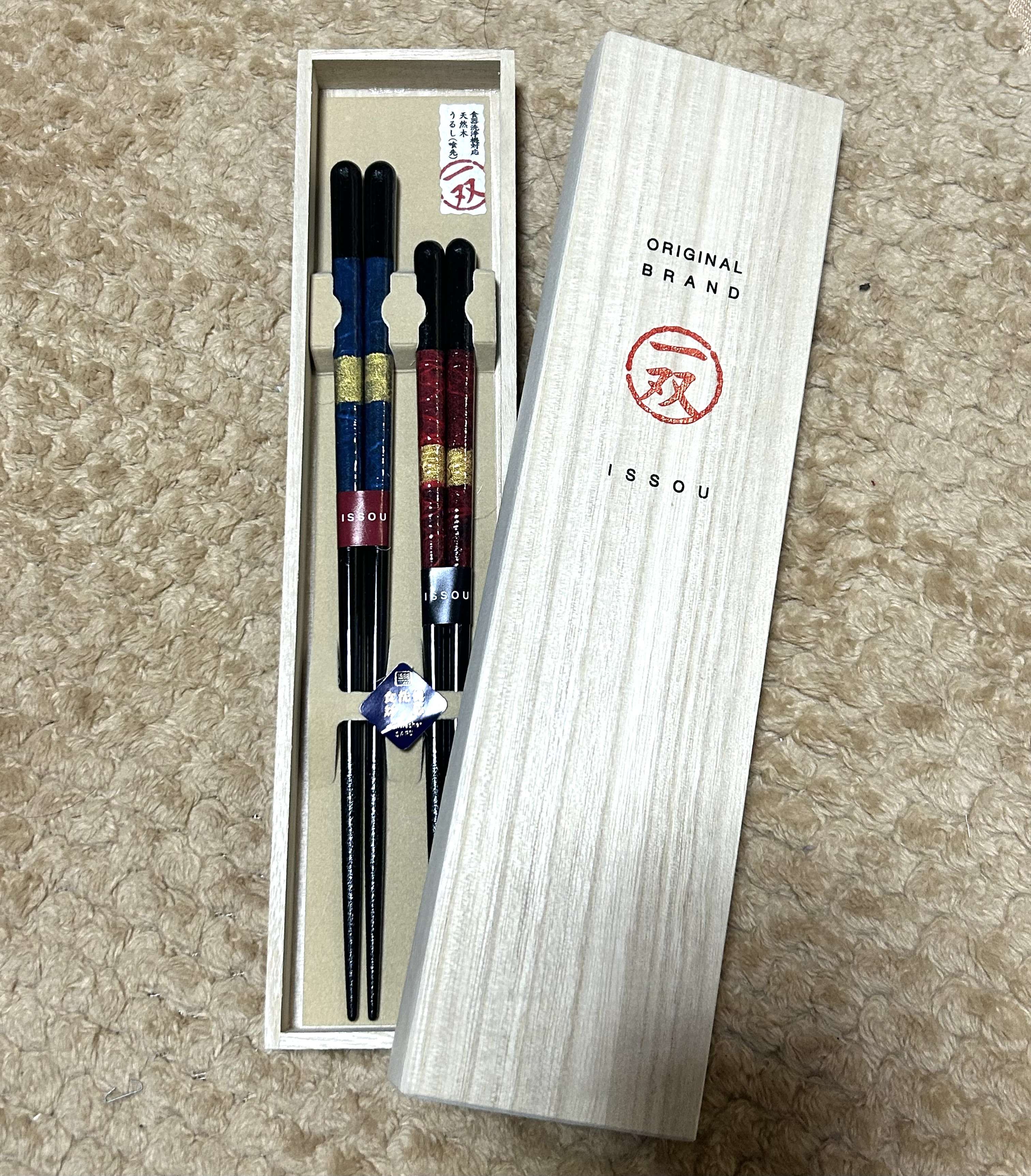 先日友達からのお祝いにも箸が入っていたのですが、テイストが違うので、使い分けします。