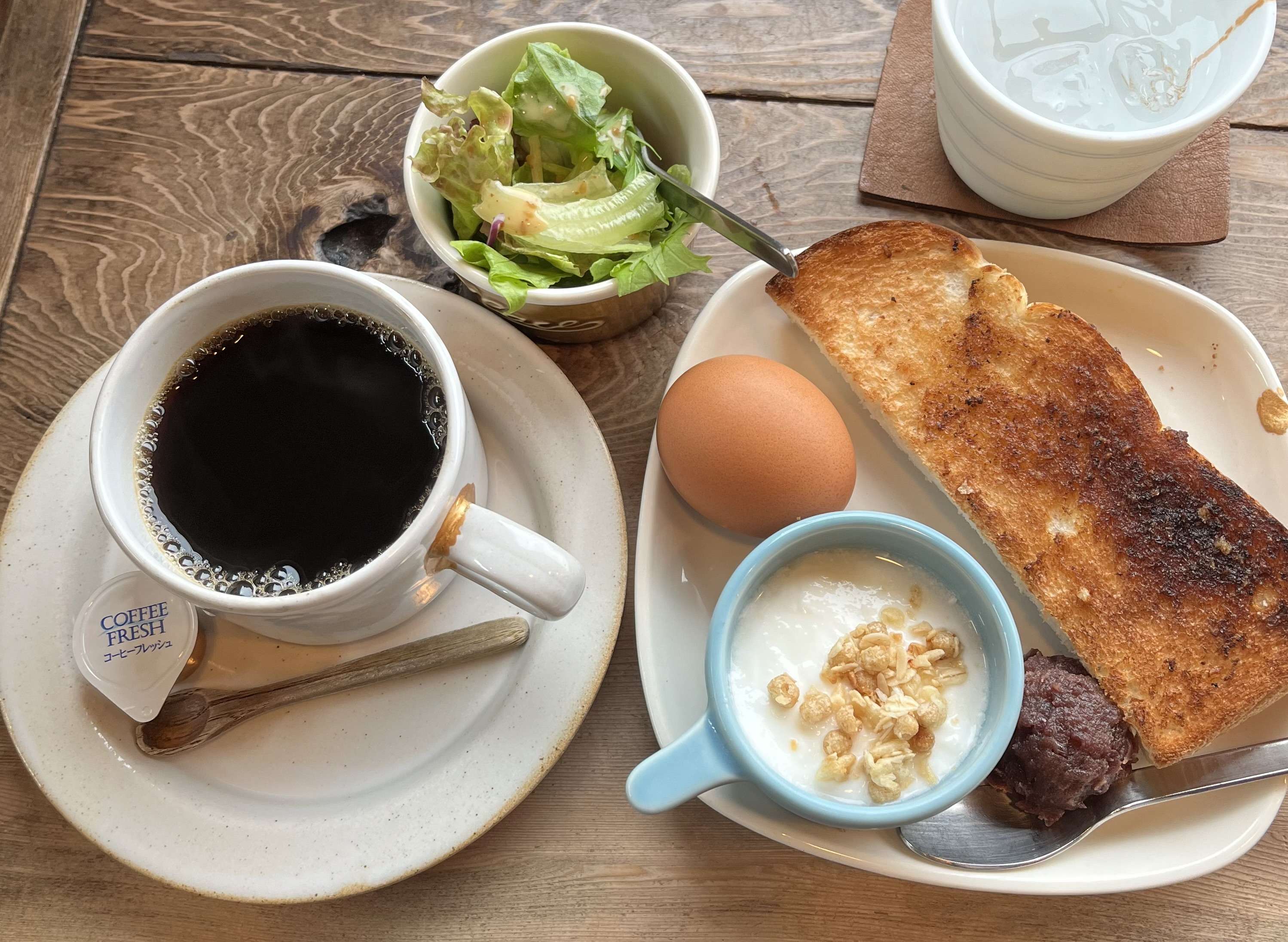 飲み物料金についてくるモーニングにしました。十分な量ですし、お洒落で落ち着いたカフェです。