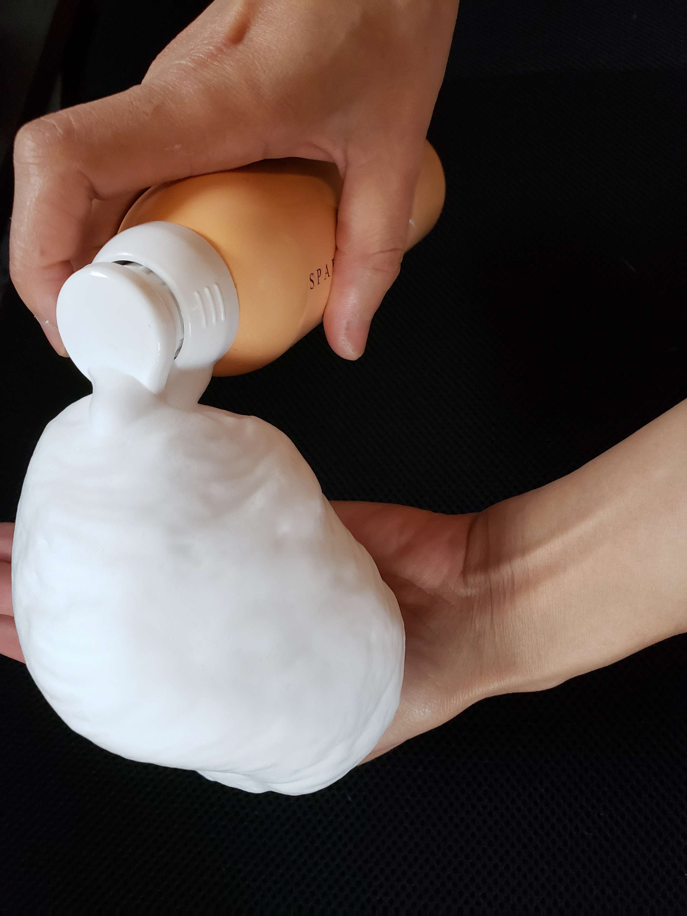❶髪や地肌は濡らさず、流さないトリートメント・プレミアムボディオイルを泡を崩さないように混ぜて頭皮と髪の毛につけて頭皮と生え際をマッサージ、