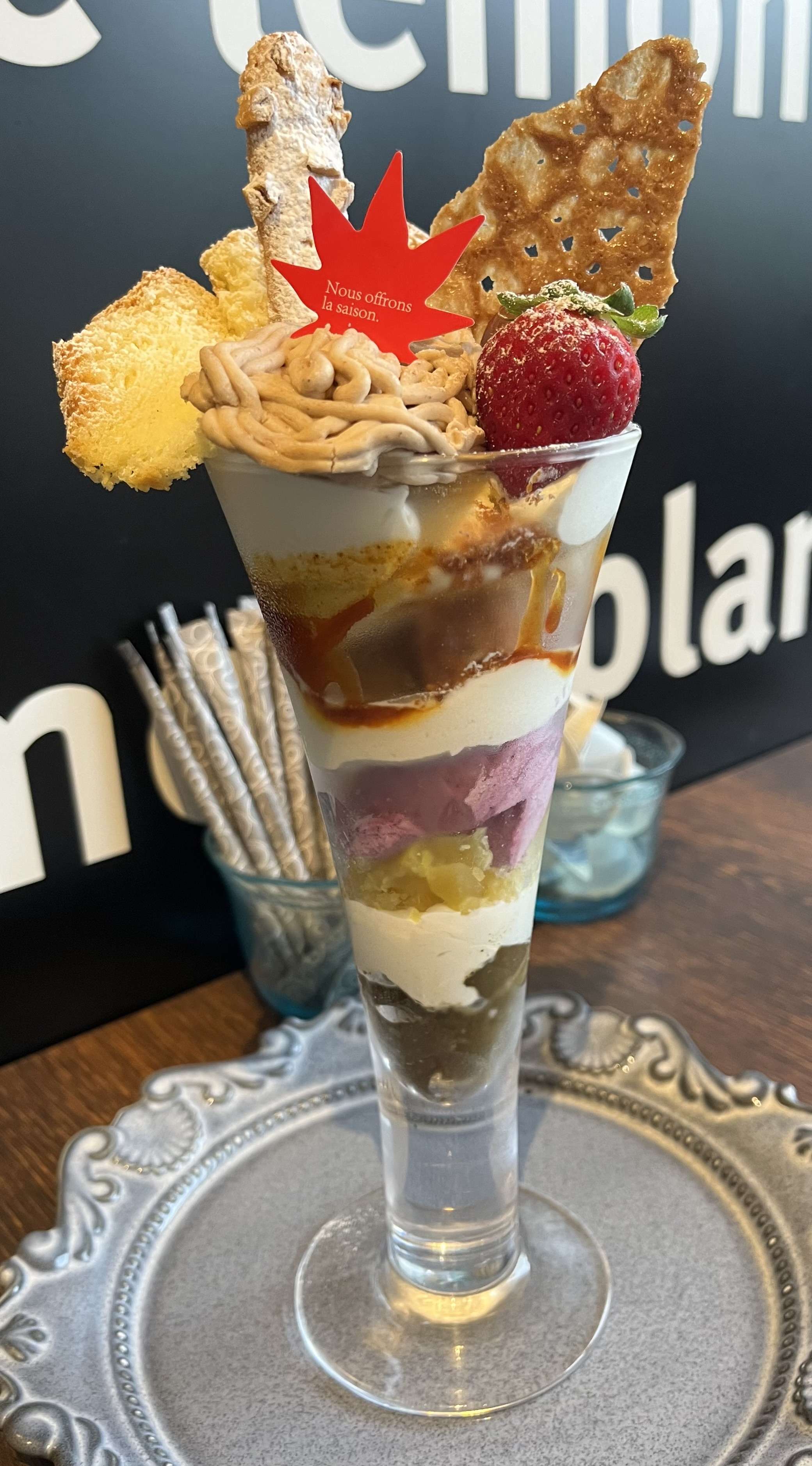 日曜に友達と一番楽しみにしていたのが…グランマルシェさんの秋パフェです。美味しかったです❤️