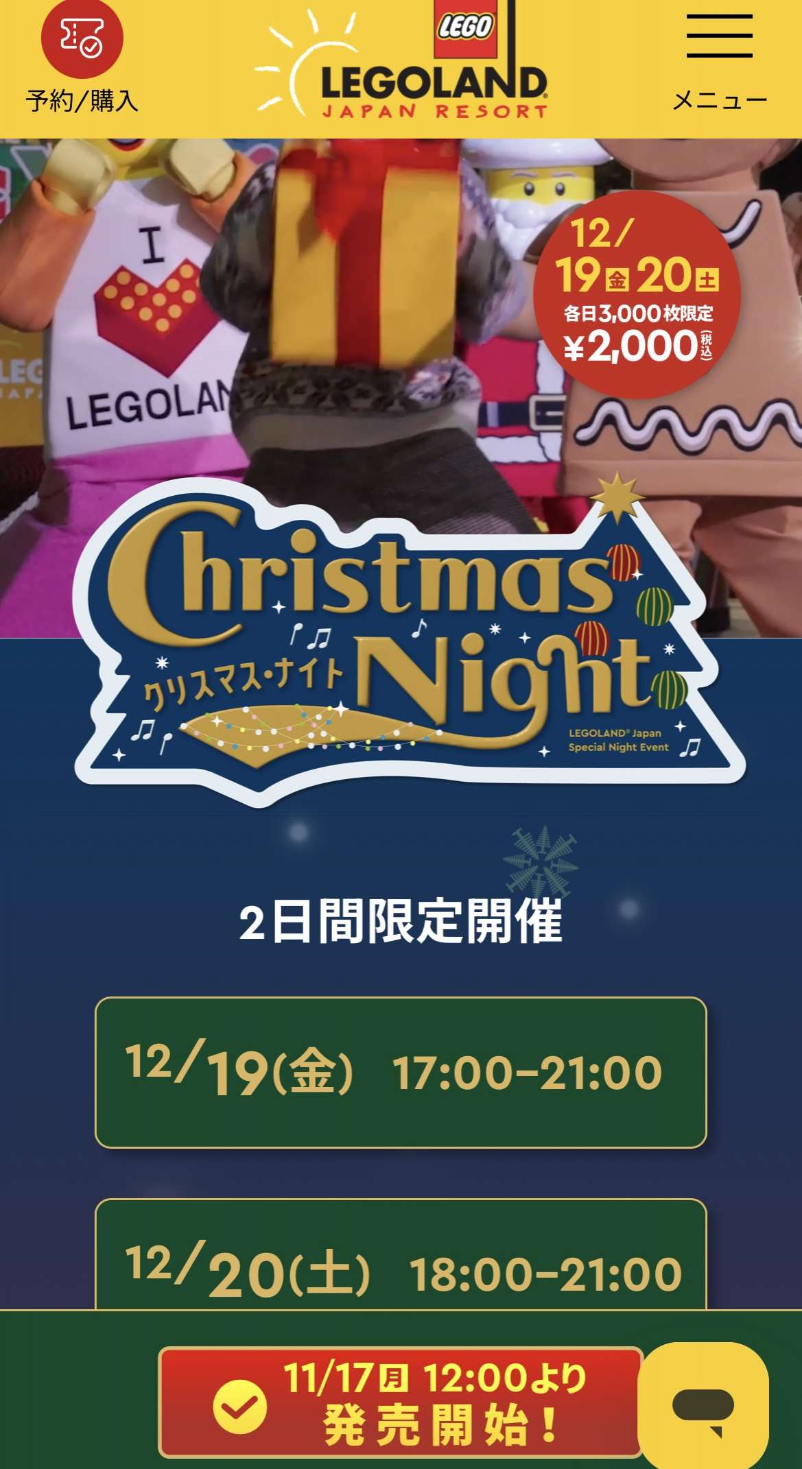 昨年行った、レゴランドのクリスマスナイトが、今年も開催されるみたいです。