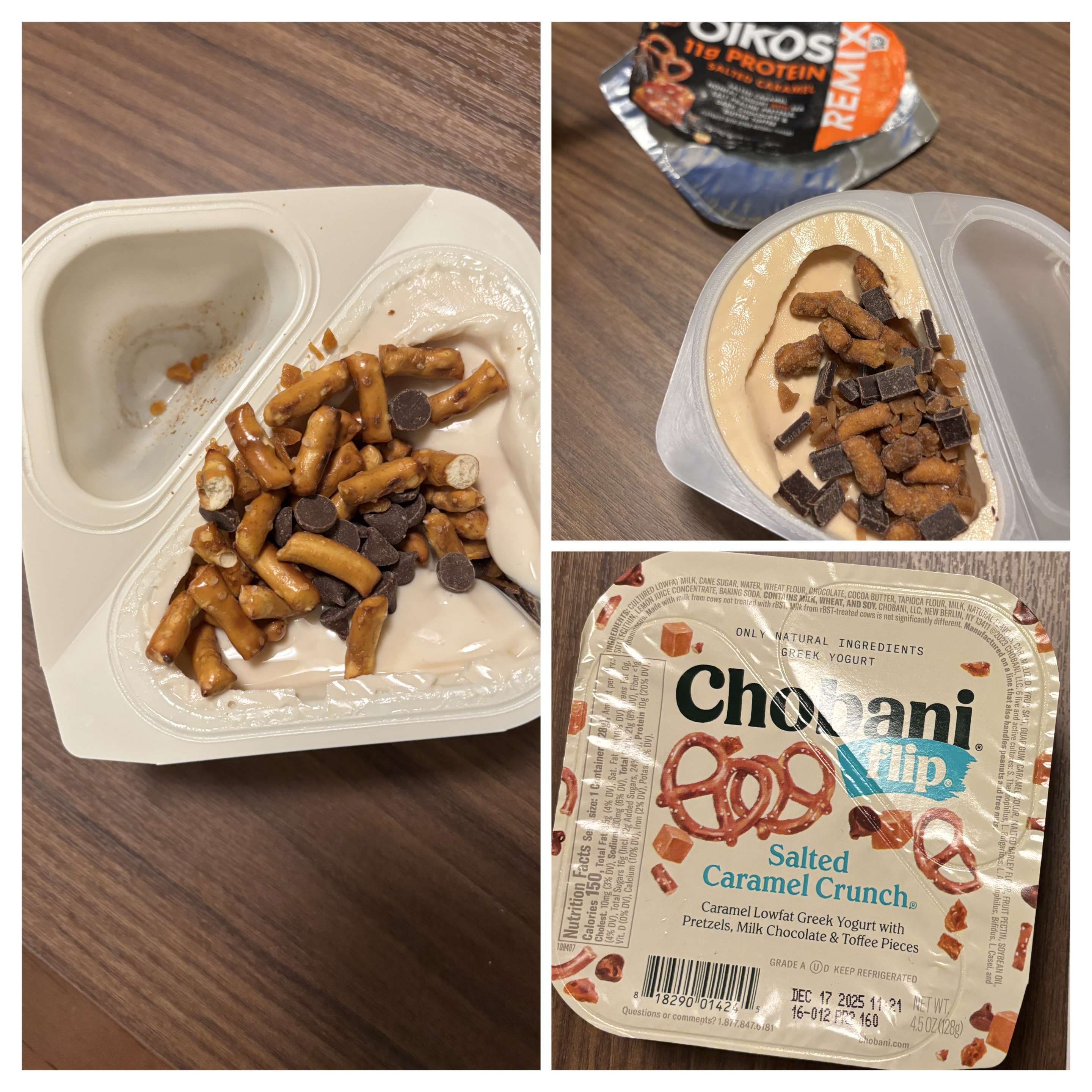 ハワイでもトッピングヨーグルトを見つけた。2種類の味を購入したが、塩キャラメルクランチ(プレッチェル)の味が美味しくてリピ買いした。