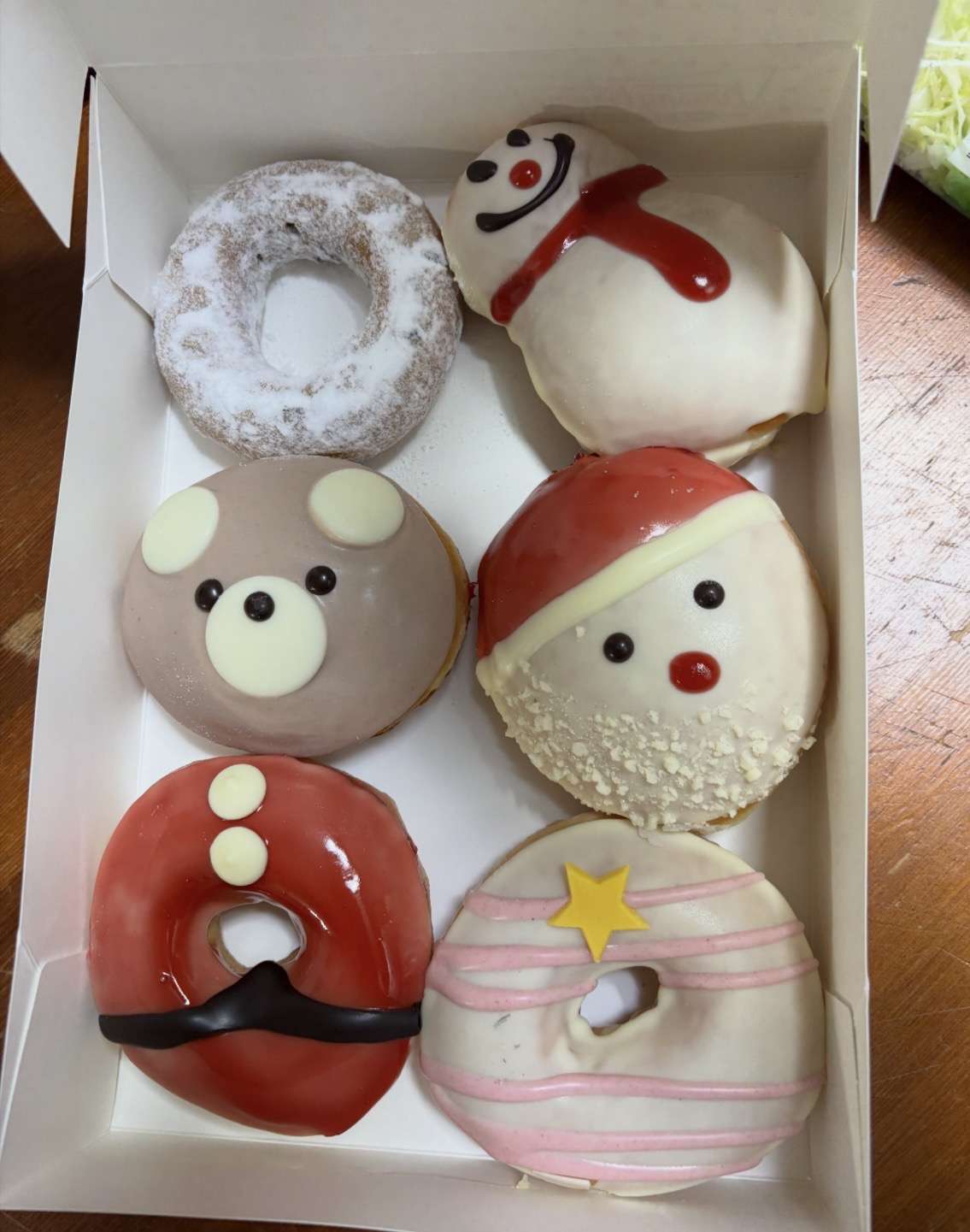 クリスマス仕様で見た目が可愛くてテンション上がる。スノーマンとサンタさんとクマさんは中にクリームが入っていた。クマさんはミルクティー味だったようだ。私はスノーマンの隣のシュトーレンドーナツを食べた。クリーム入りのを食べたかったがダイエット中なので我慢した。甘くないアイスアメリカーノと一緒に久しぶりに食べたドーナツが美味しかった。