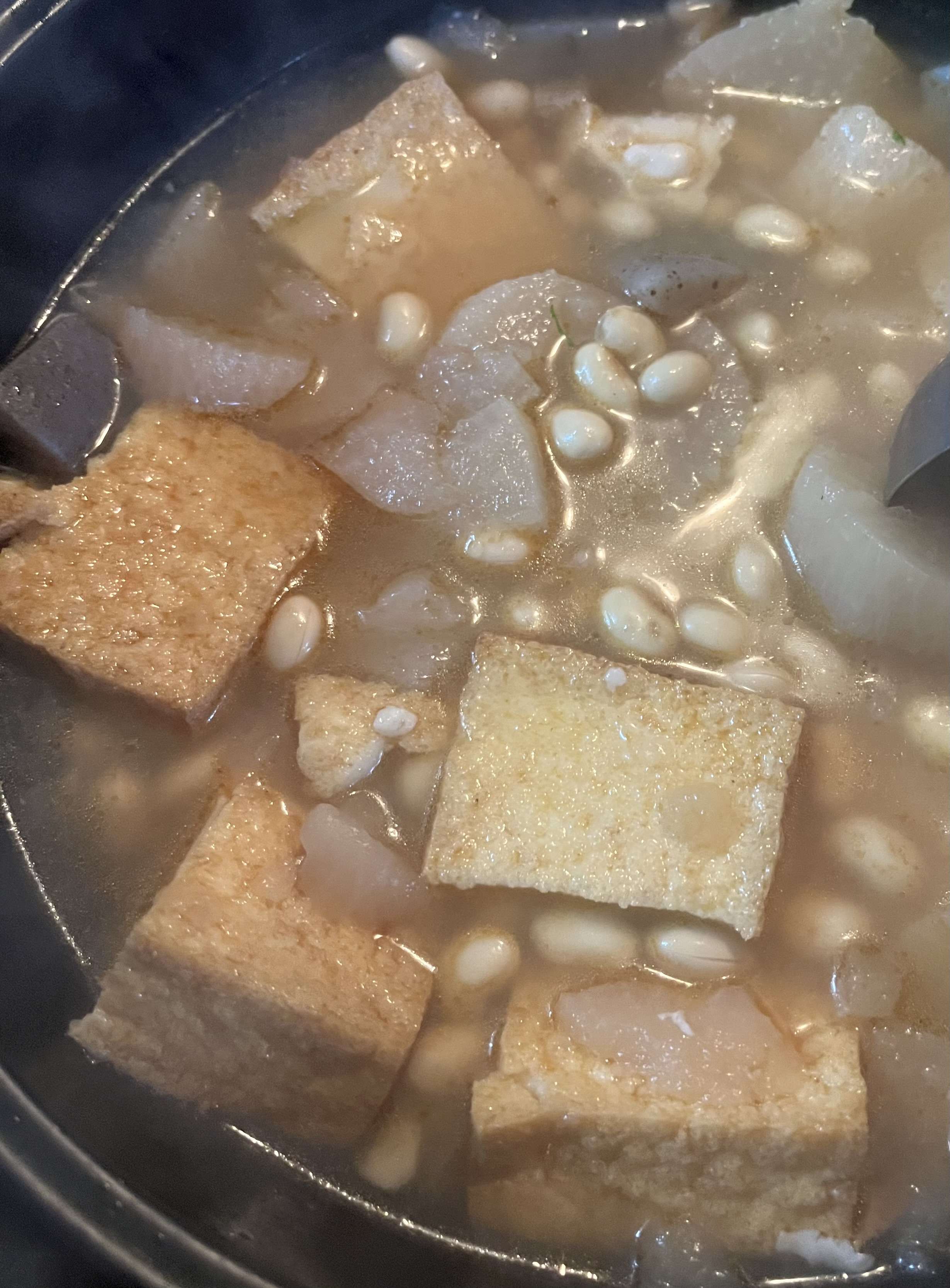 先日は、おでんの後に、厚揚げと大豆を入れました。