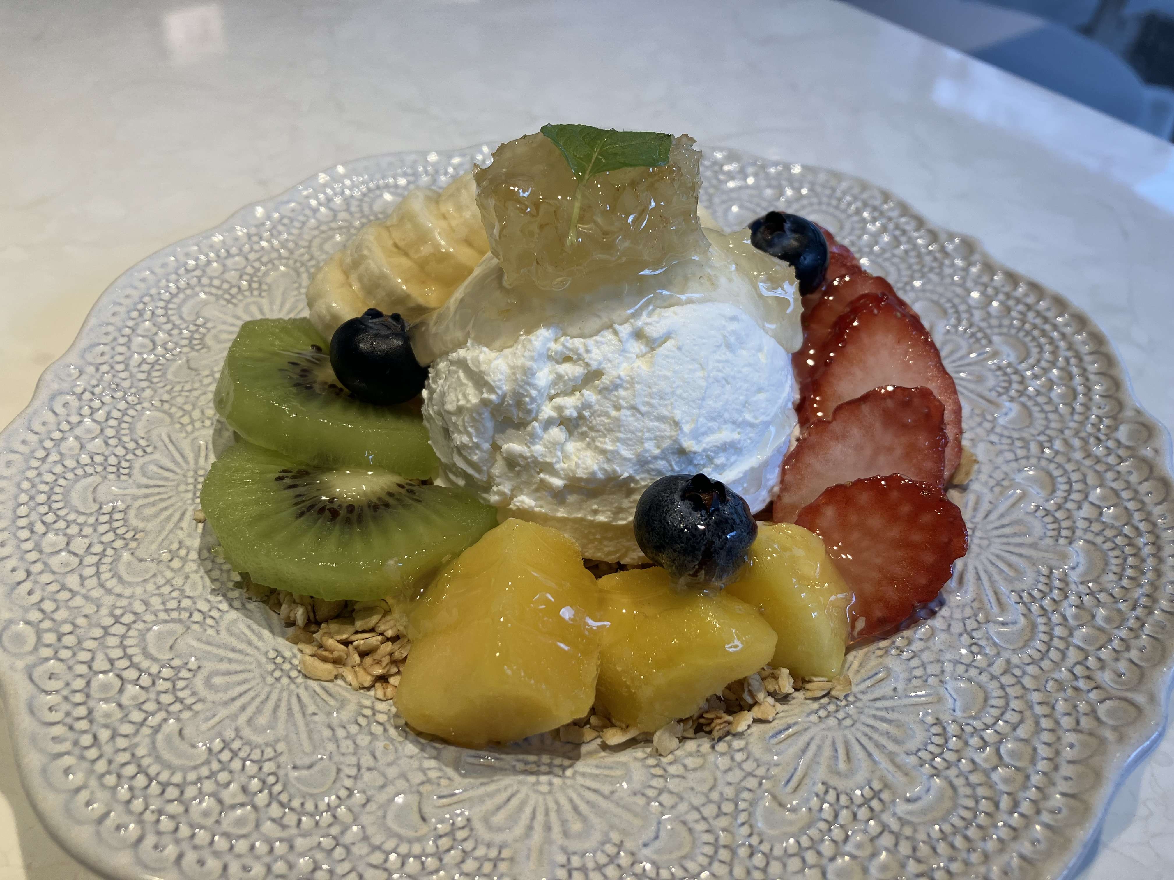 ランチは青山でヨーグルトを食べました。ビタミン不足なのでフルーツ多めのメニューを注文しました。甘さ控えめですが、とても美味しかったです。