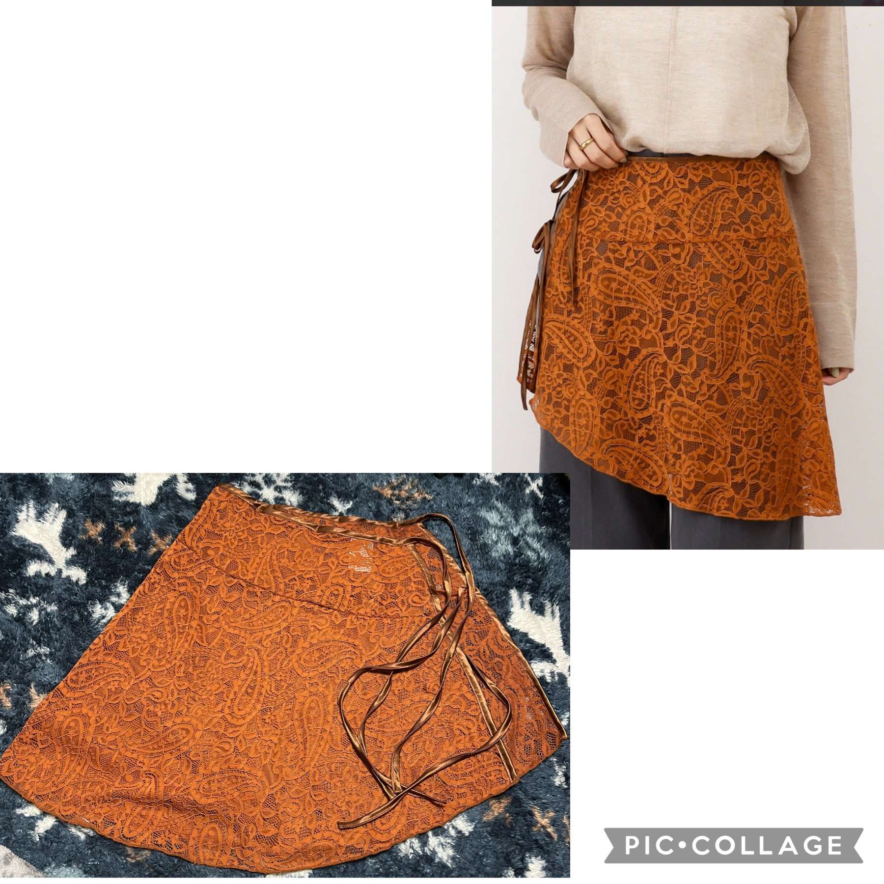 落ち着いたオレンジ色とレースがたまらないです🧡
