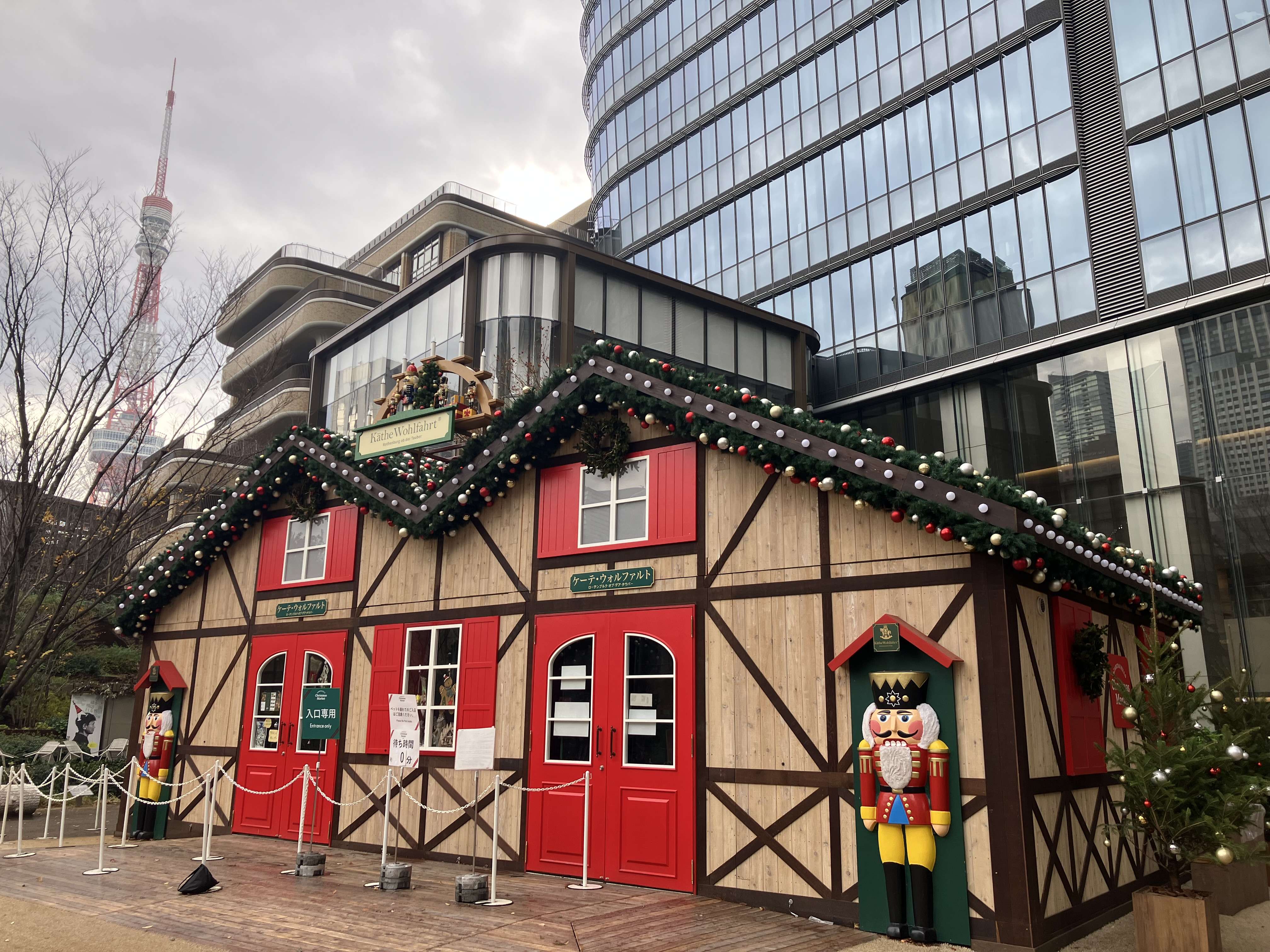 友人と麻布台ヒルズで待ち合わせだったので、夫が車で送ってくれました。寒いので有難いです。午前中のクリスマスマーケットはお店はやっていませんが、人があまりいなくて新鮮でした。