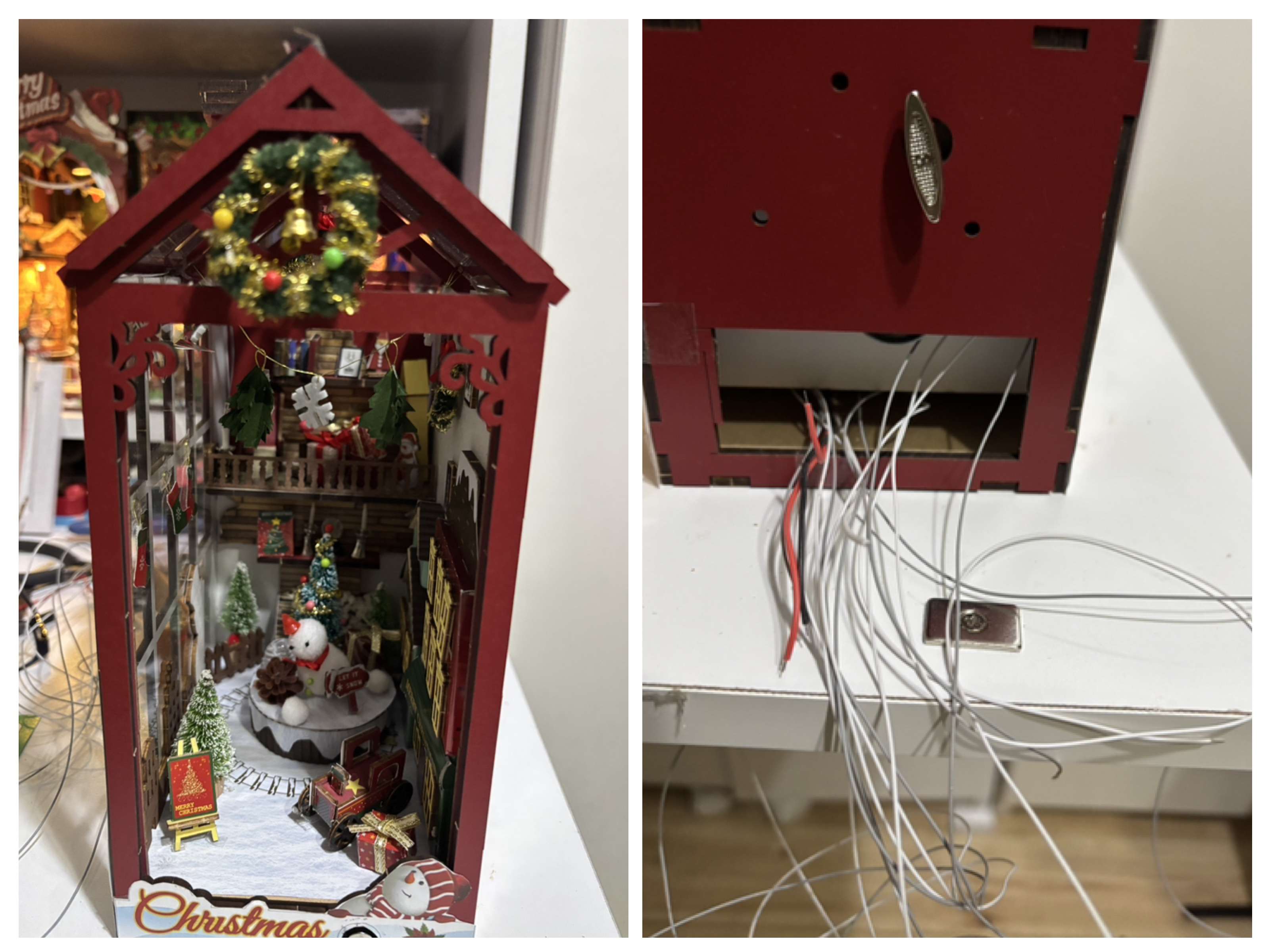 クリスマスのBook Nook Kit だ。2,980円と安かっただけのことはあり、板にペーパーを貼り付ける手間がかかる作業が多かった。今まで作った物は板にカラー印刷してあるのでペーパーを貼り付ける手間は無かった。やはり配線が大変でこれは明日やることにした。