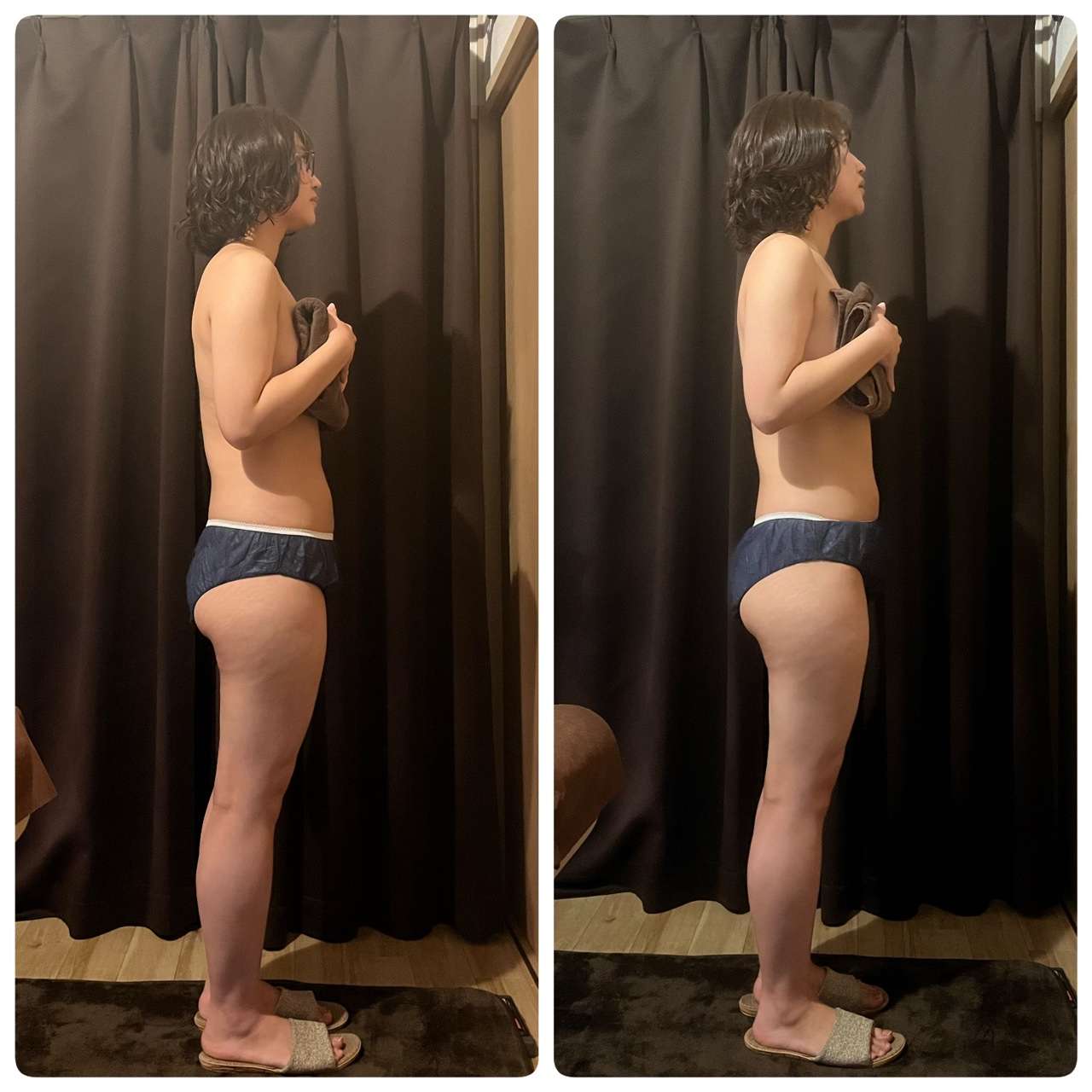 え!何か身長伸びた?!って感じなんですが多分変わって無くて、ストレートネックだった首が本来の位置に戻っております。横から見ると巻き肩改善部分がよく分かりますね、肩の付け根部分の背中がほとんど見えなくなっています。