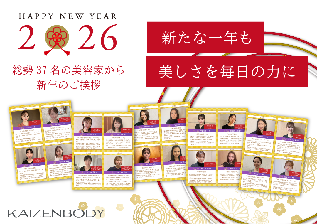 2026年もKAIZENBODYは、皆さまの理想の美と健やかな毎日を支えるため、心を込めた技術とサービスをお届けしてまいります。