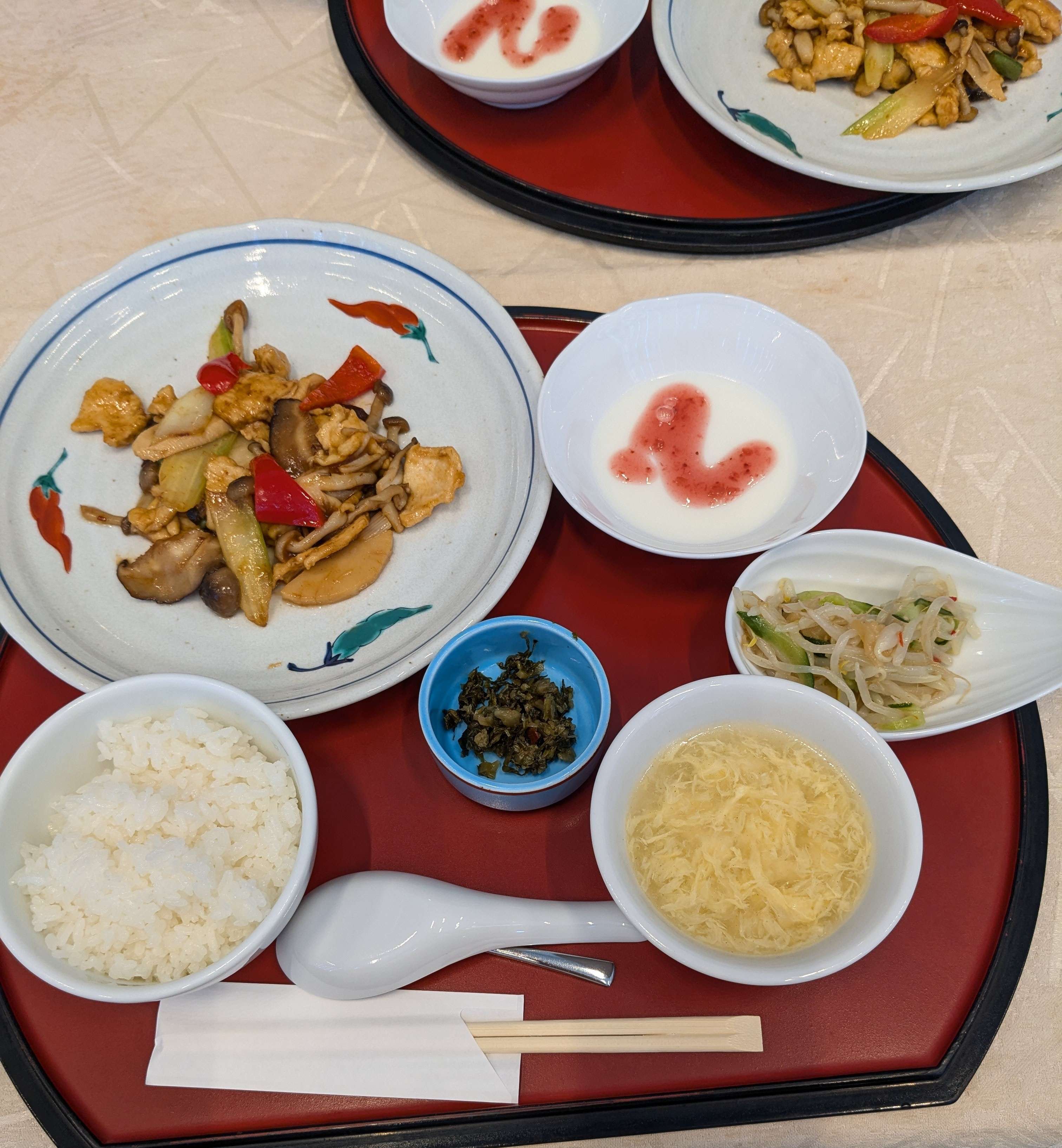 今日は社食で中華定食を食べました。休みをくっつけて4連休にする人が多いのか食堂は空いてました。