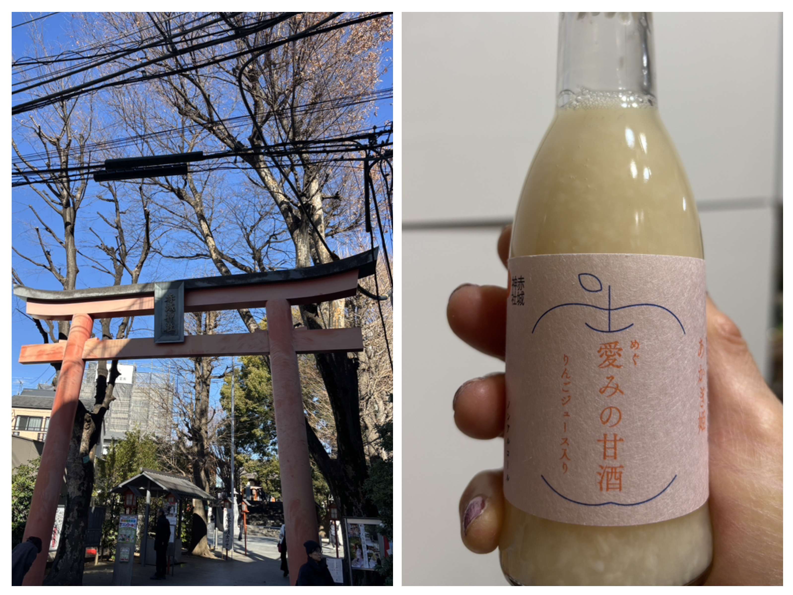 カフェではコーヒーをいただいたが、「愛みの甘酒」りんごジュース入りノンアルコールをお土産に買ってきた。メニューには 【砂糖不使用。神さまのお下がりとしてお召し上がりください】とあった。いただくのが楽しみだ。