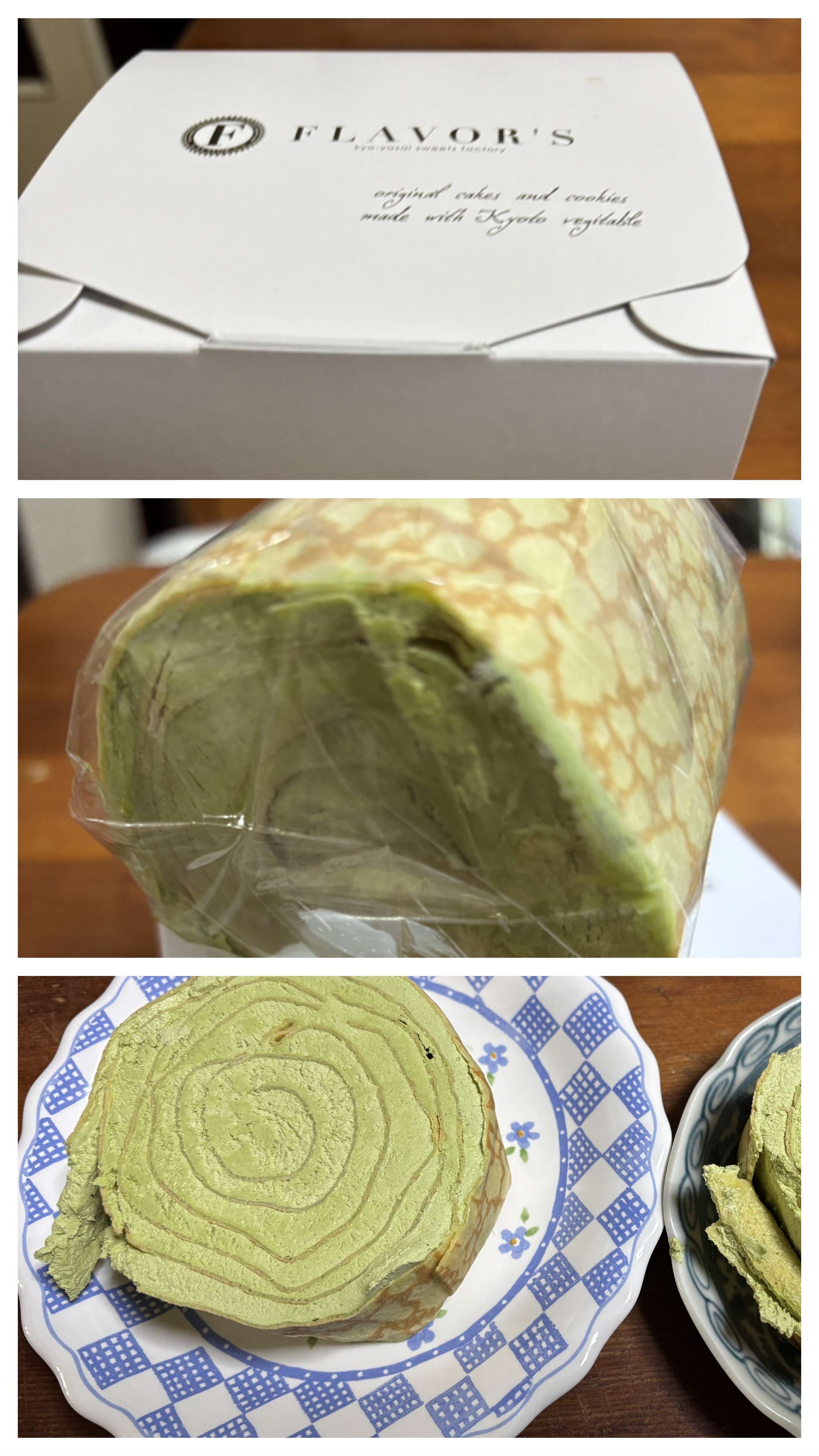 年末年始仕事をした家族が会社からご褒美を貰った。3000円位のカタログから選んで良いと言われた。私に何が良いかと聞かれたので、水煎包、梅干し、ちりめん、鮭、お吸い物最中、そしてこのミルクレープ宇治抹茶などを選び本人に決めてもらった。何が届くかは教えてもらわなかった。