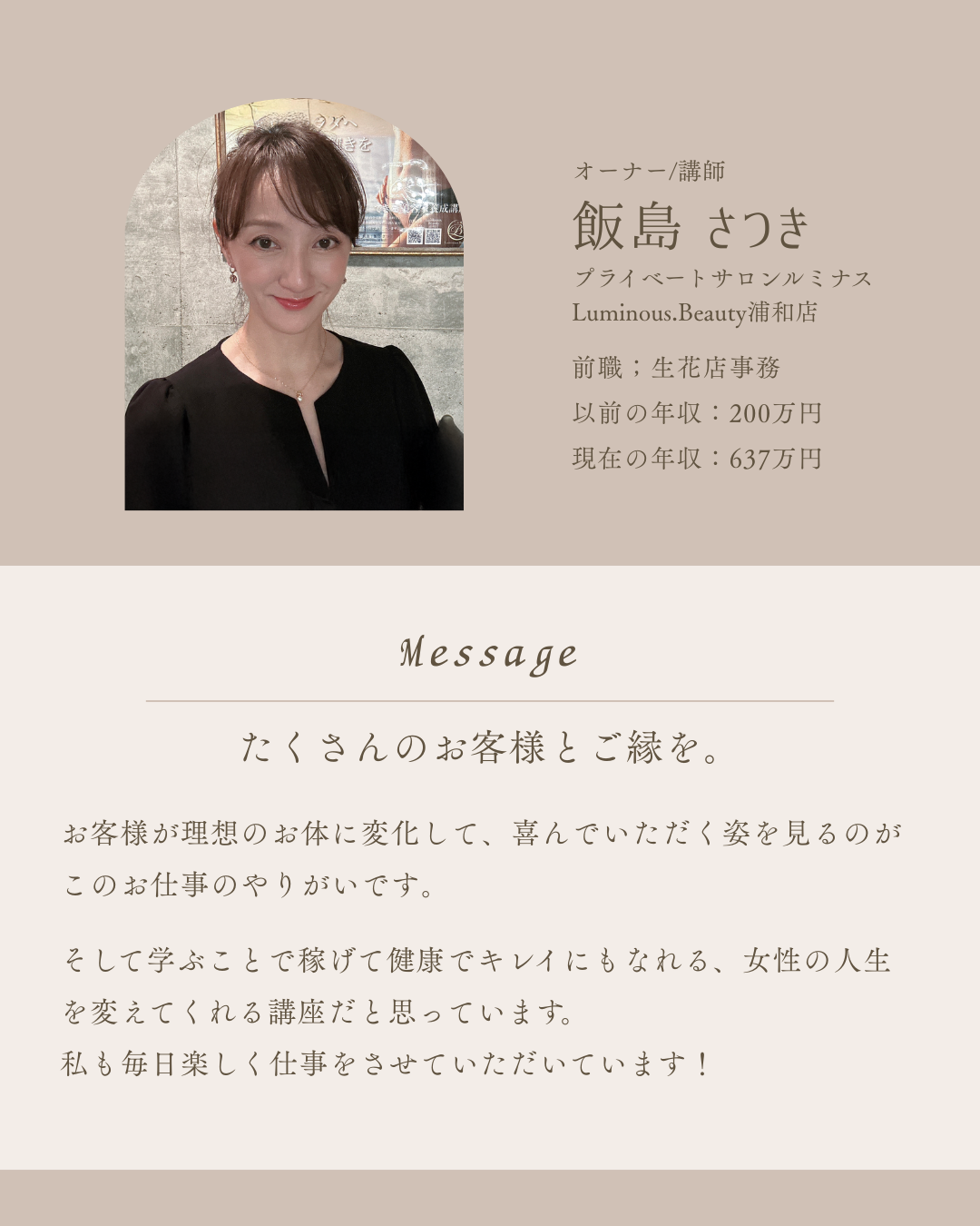 本日はエステティシャンという仕事の魅力や、実際に活躍している方の事例、講座の仕組みについてご紹介します。
